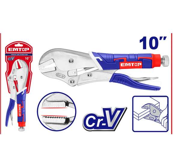 ام توب كلابة 10 بوصة مستقيمة (ELPRSJ1002) Emtop Straight Jaw Plier 10 inches (ELPRSJ1002) Size: 10" Material:Cr-V Openings range: 0-50mm Straight jaw profile holds flat stock and sheet mate