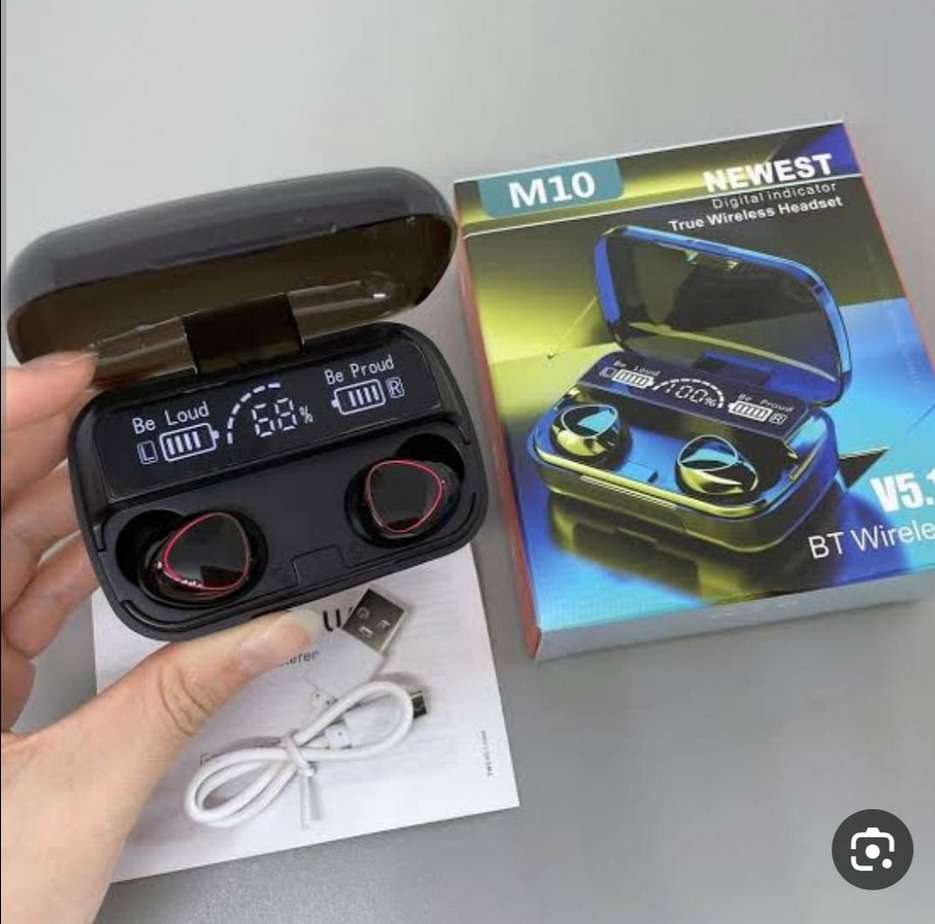 السماعه M10 سماعه وباوربانك 2 في 1 تعمل على هواتف الأندرويد و الأيفون ( تعمل على جميع الأجهزة) و الساعات الذكية. تعمل باللمس. أحدث إصدار بلوتوث 5.1 ( لاتأخيربصوت_الألعاب). يمكن الرد على ال