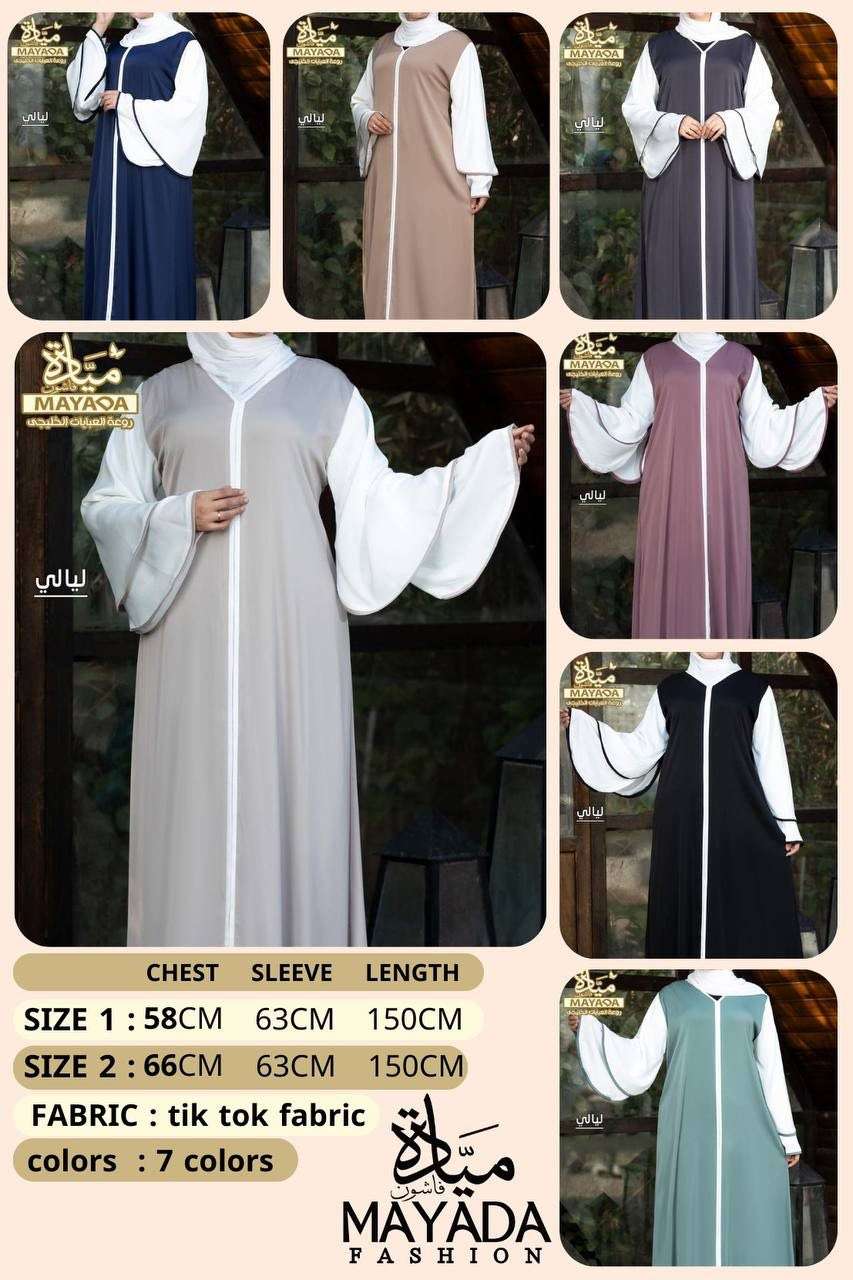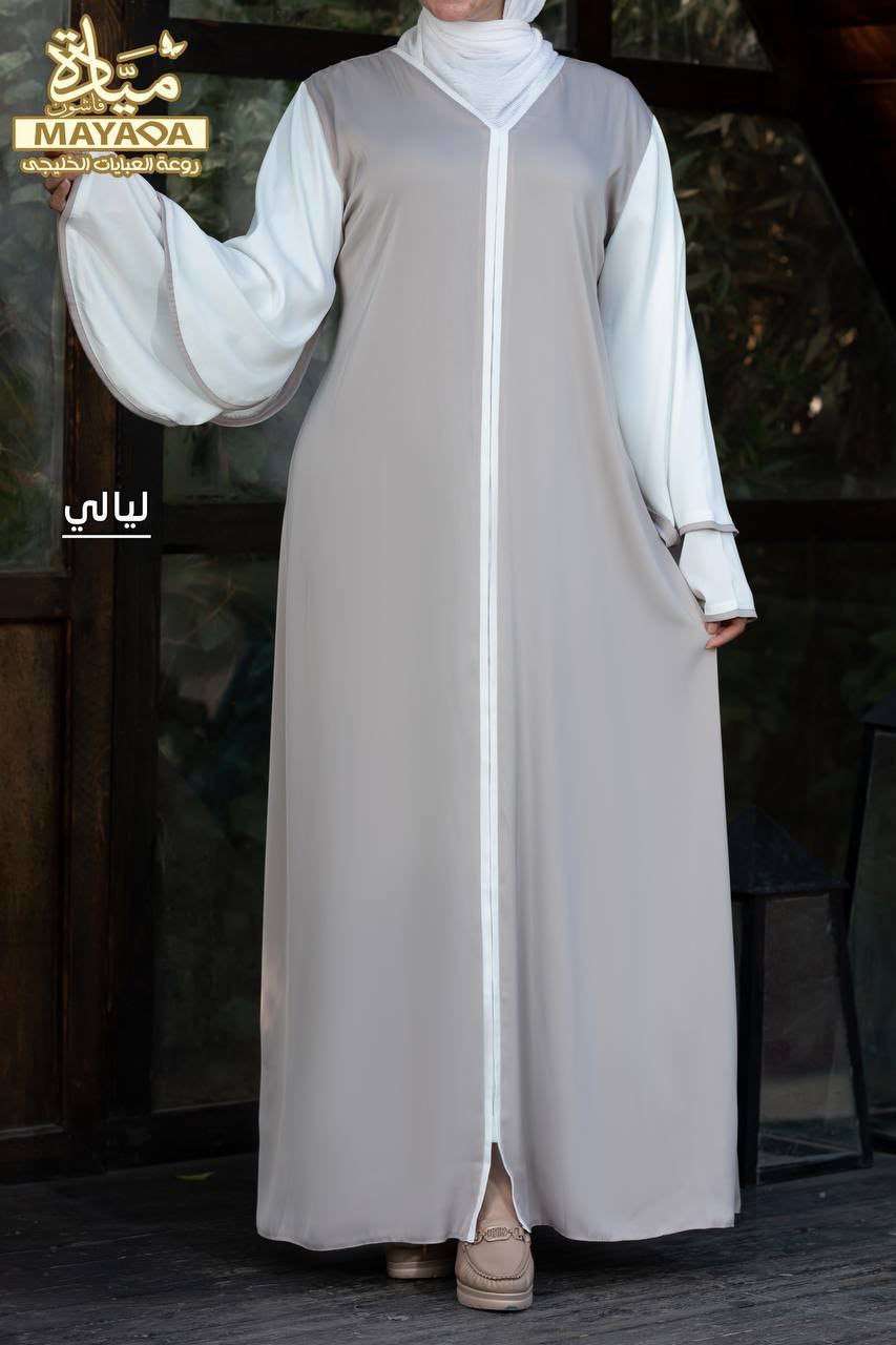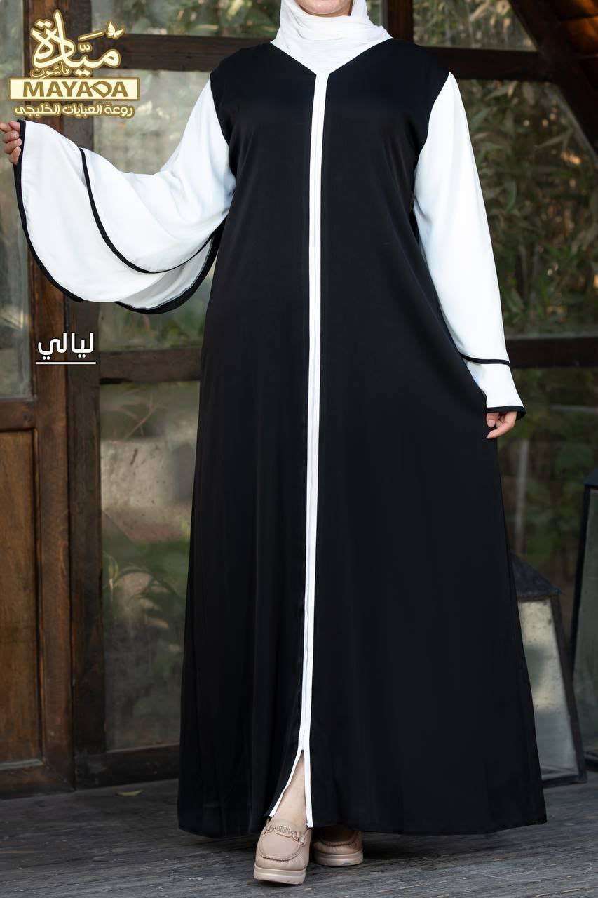 الجديد من براند ميادة فاشون ❤️ موديل ليالي 🦋 " استايل بسيط ورقيق مختلف تماما عن كل مرة عباية باستايل كلوش ورقيقة جدا بـ 2كم مروحة مغلق من الداخل، انيقة جدا كم ابيض اساسي تطعيم بيي