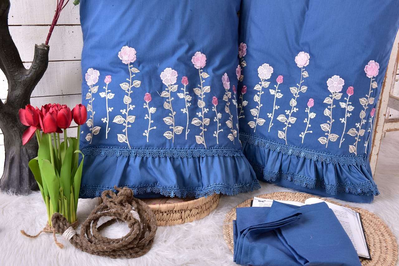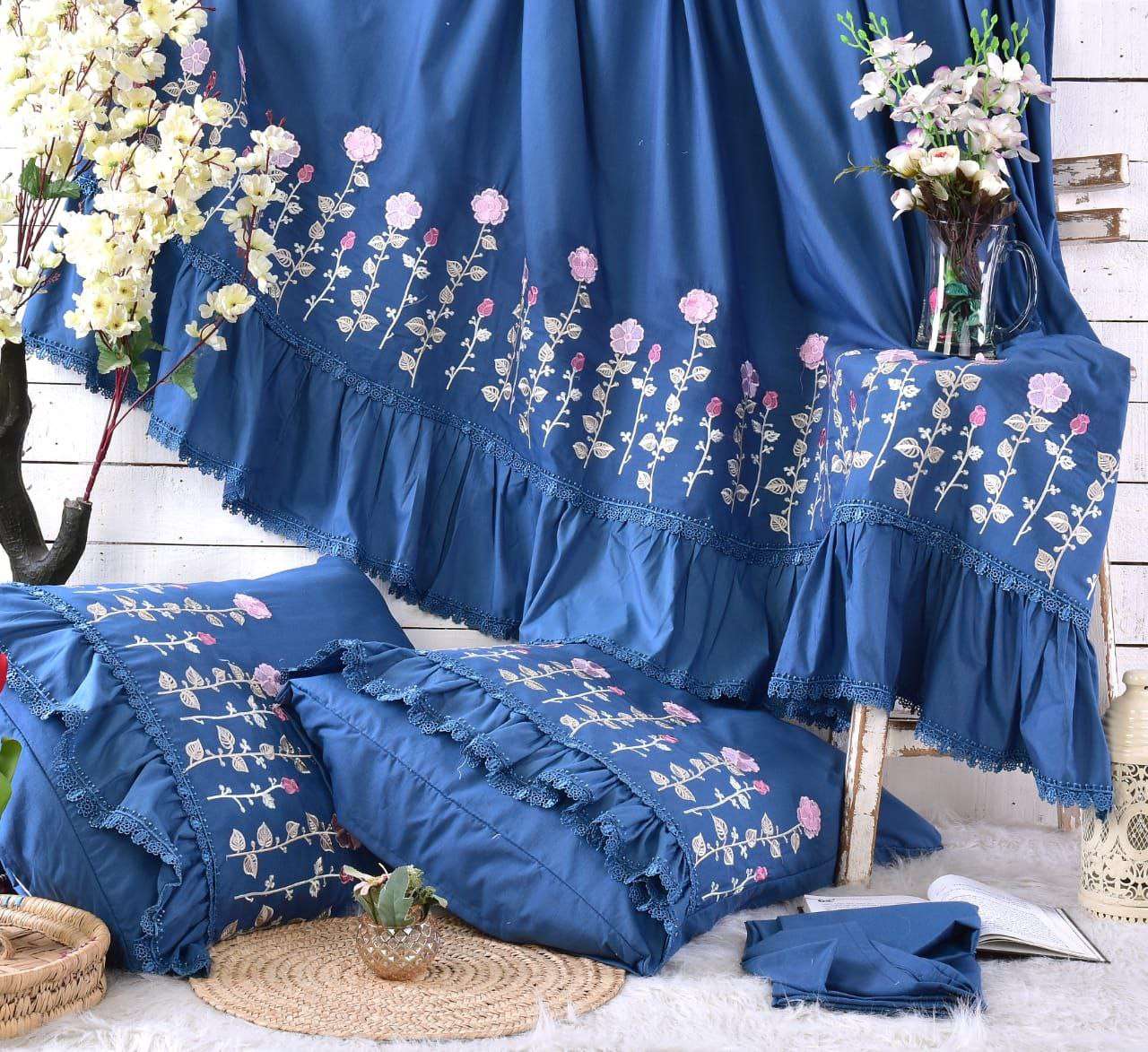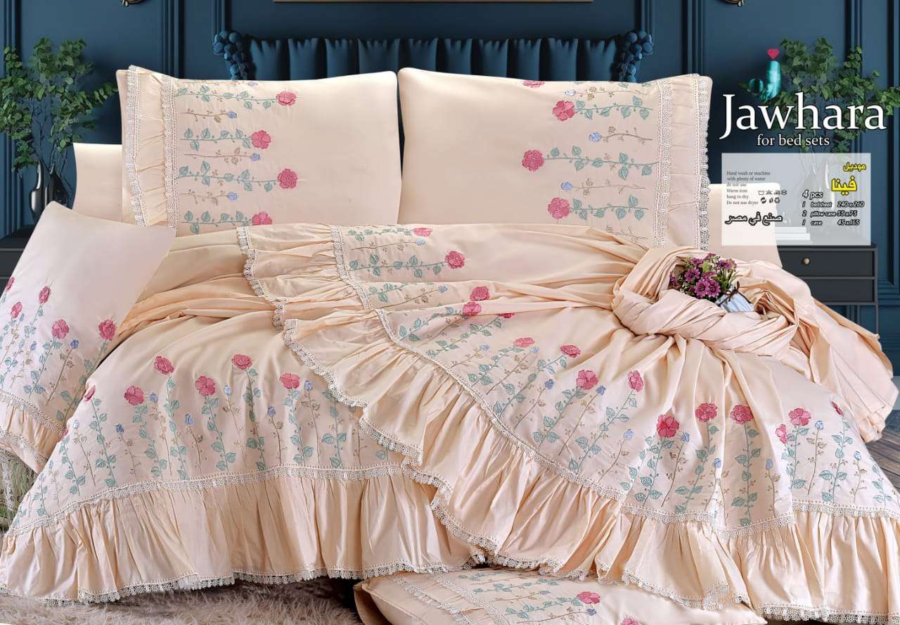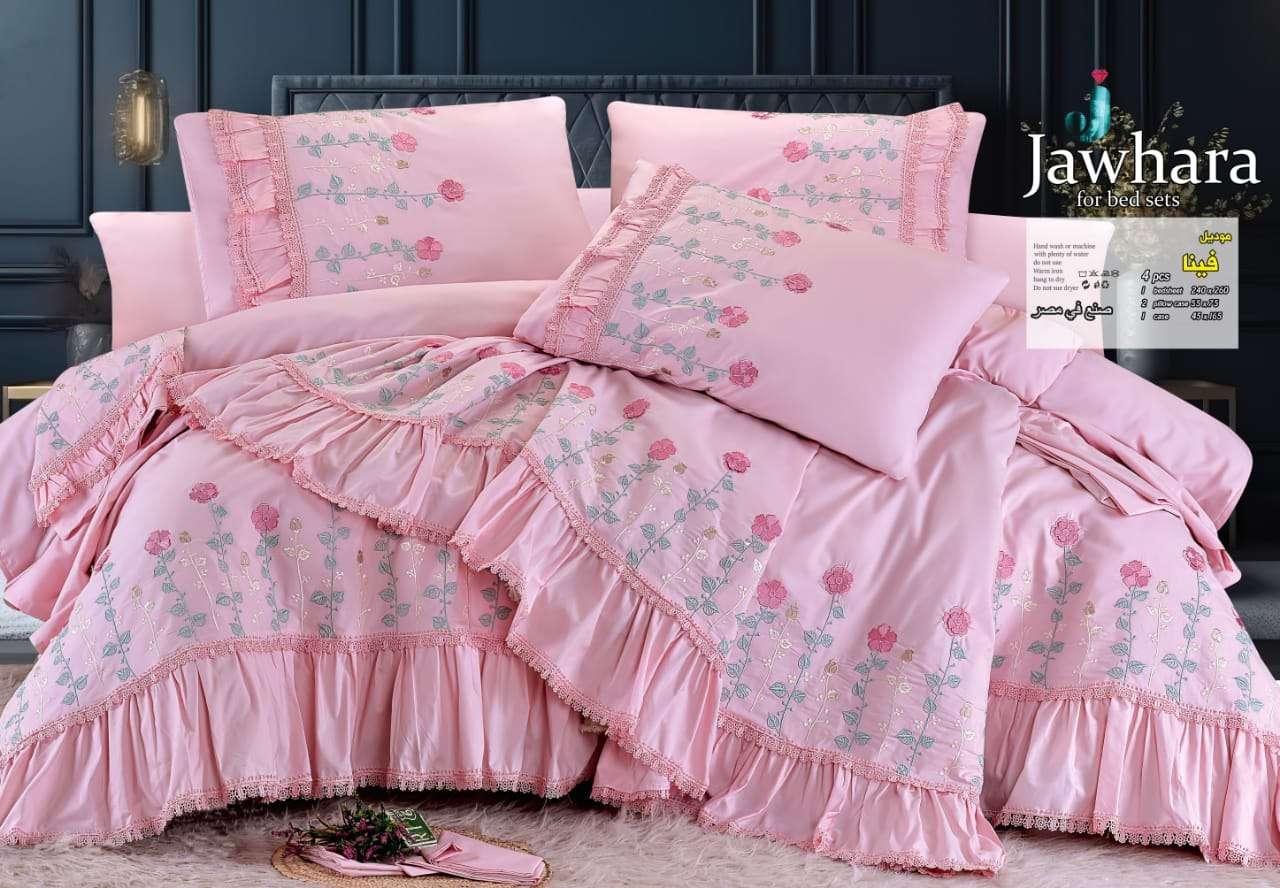 🌼 طقم سرير قطن بيور مطرز فينا الجوهرة قطن صافي 💯✖️💯 4 قطع كبير ملاية 240x260 مخدة 45x165 2 خدادية 55x75 السعر 1035 ج