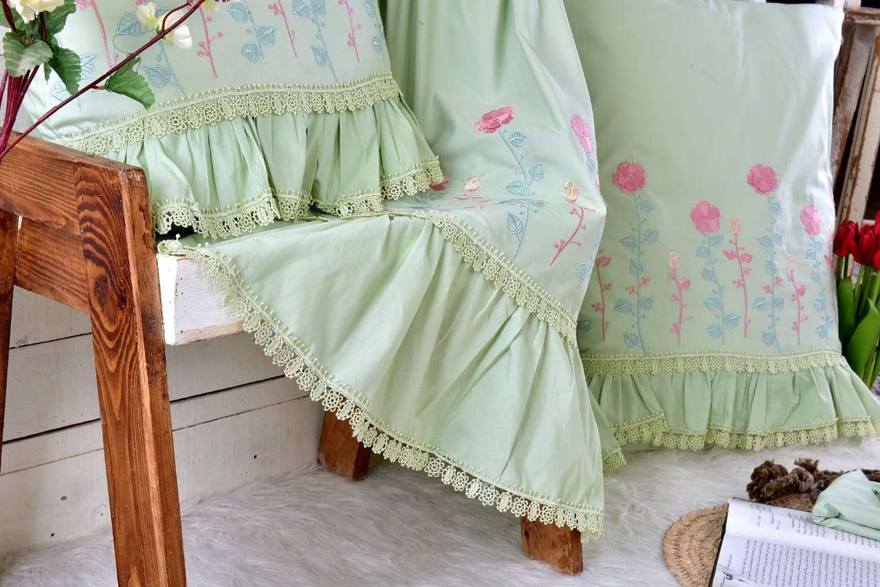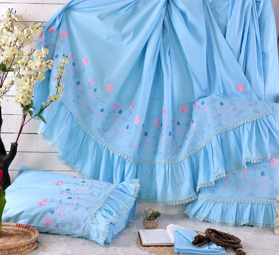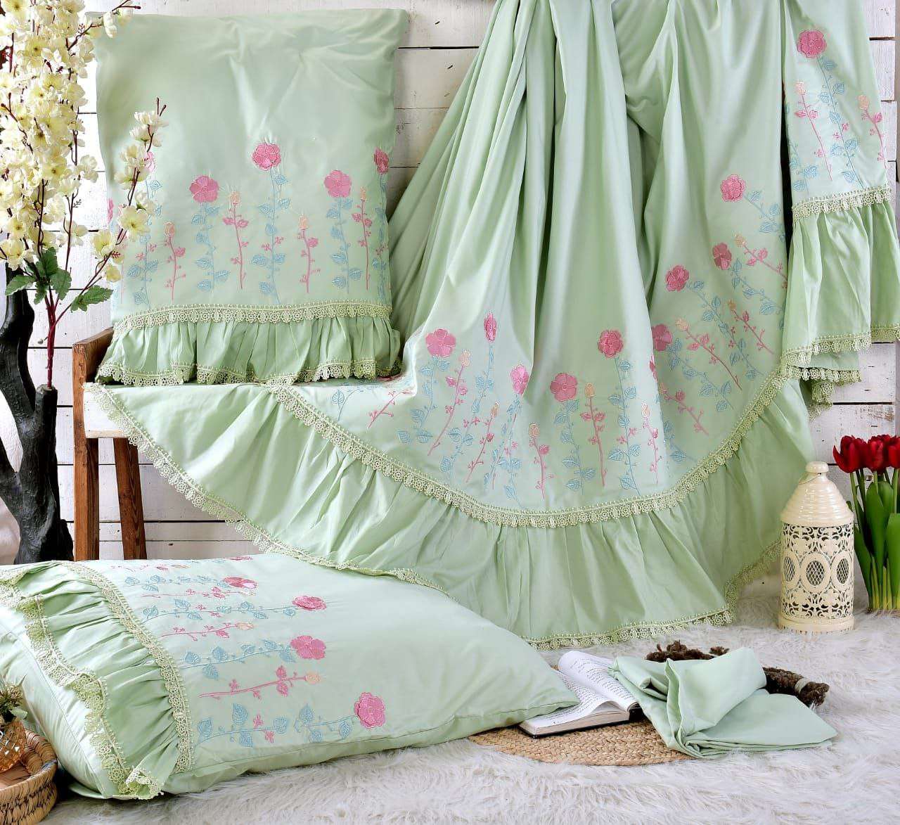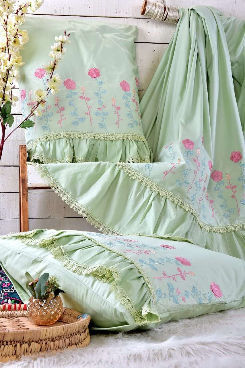 🌼 طقم سرير قطن بيور مطرز فينا الجوهرة قطن صافي 💯✖️💯 4 قطع كبير ملاية 240x260 مخدة 45x165 2 خدادية 55x75 السعر 1035 ج