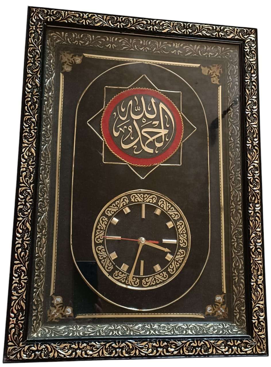برواز حائط مجسم به ساعه وكلمة الحمد لله