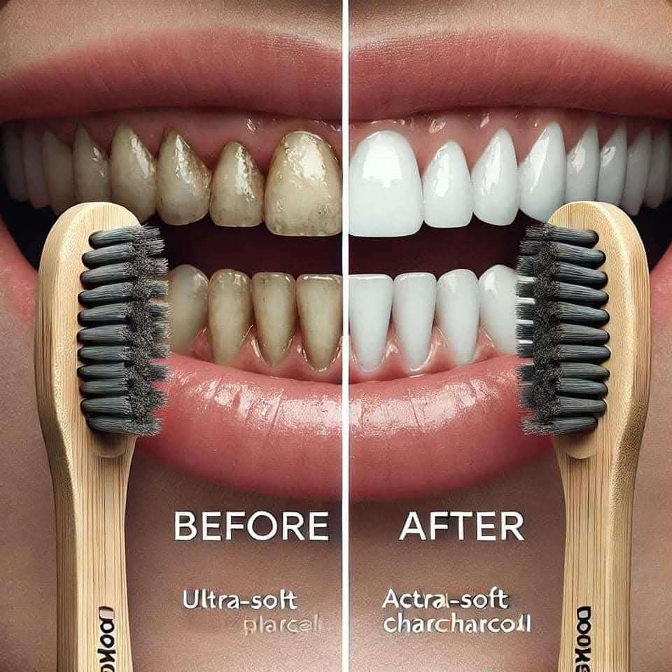 .. فرشاة بشعيرات رفيعة مكونة من الياف الفحم النشط التى تساعد على ازالة البقع و طبقة البلاك الضارة – تساعد بشكل كبير على القضاء على البكتريا التى تسبب رائحة الفم الكريهة – تساعد على ازالة التصبغات ا