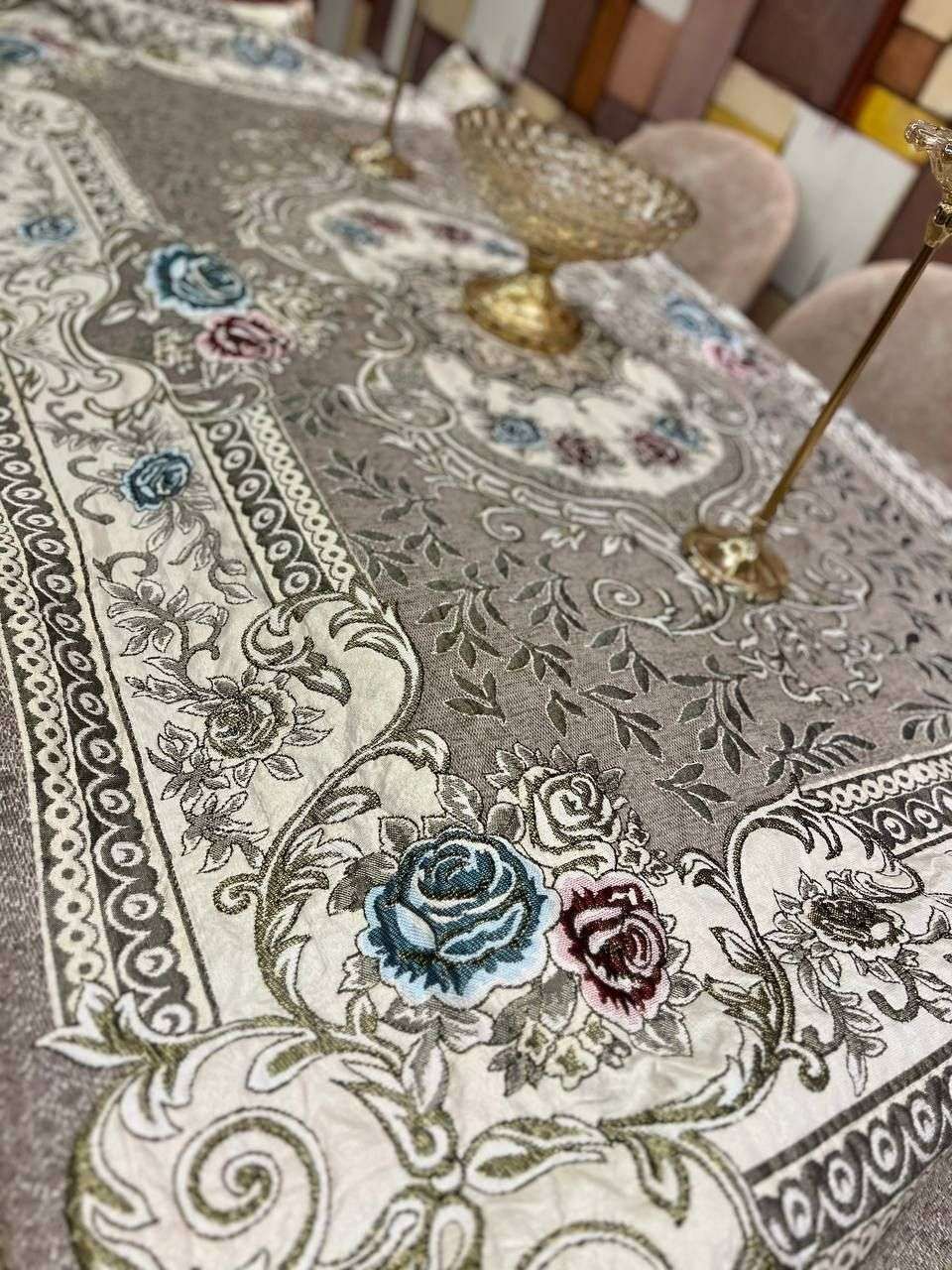 الاصلي الاصلي الجوبلان مش القماش العادي مفرش العيييد سفره جوبلان ضرب نااااار 😍😍 الحجم الكبير الخامه شانليا التقيله ينفع لسفره ٦كراسي و ٨ كراسي تحفه جدا وشيك هيحافظ ع شكل سفرتك خام