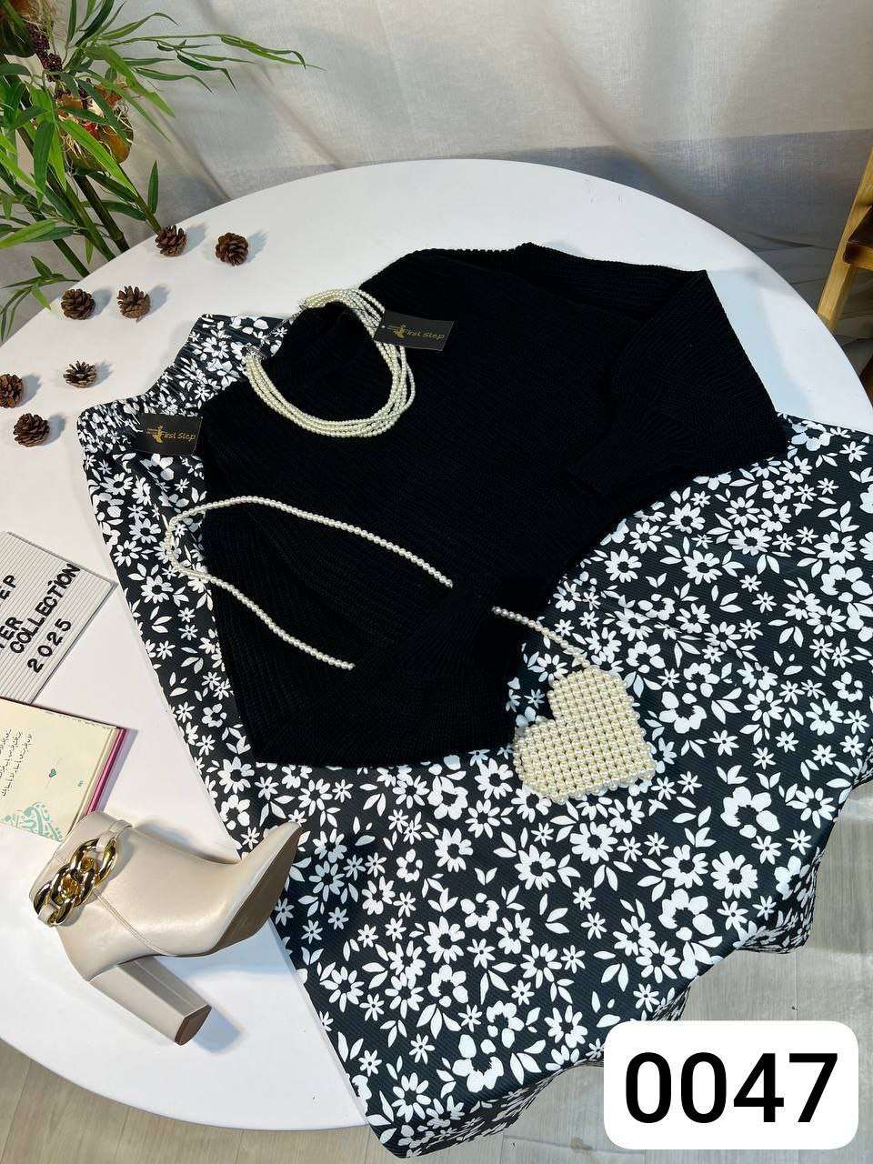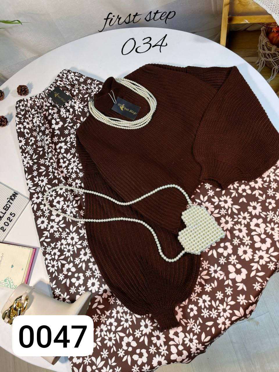 الموديل طقم 2قطعه ً الخامه 👌البلوزه تريكو ✨🔥 الخامه 👍 الجيبه اسكوبا مطبوع المقاس 85/70 ً السعر // 550 كوود 0047