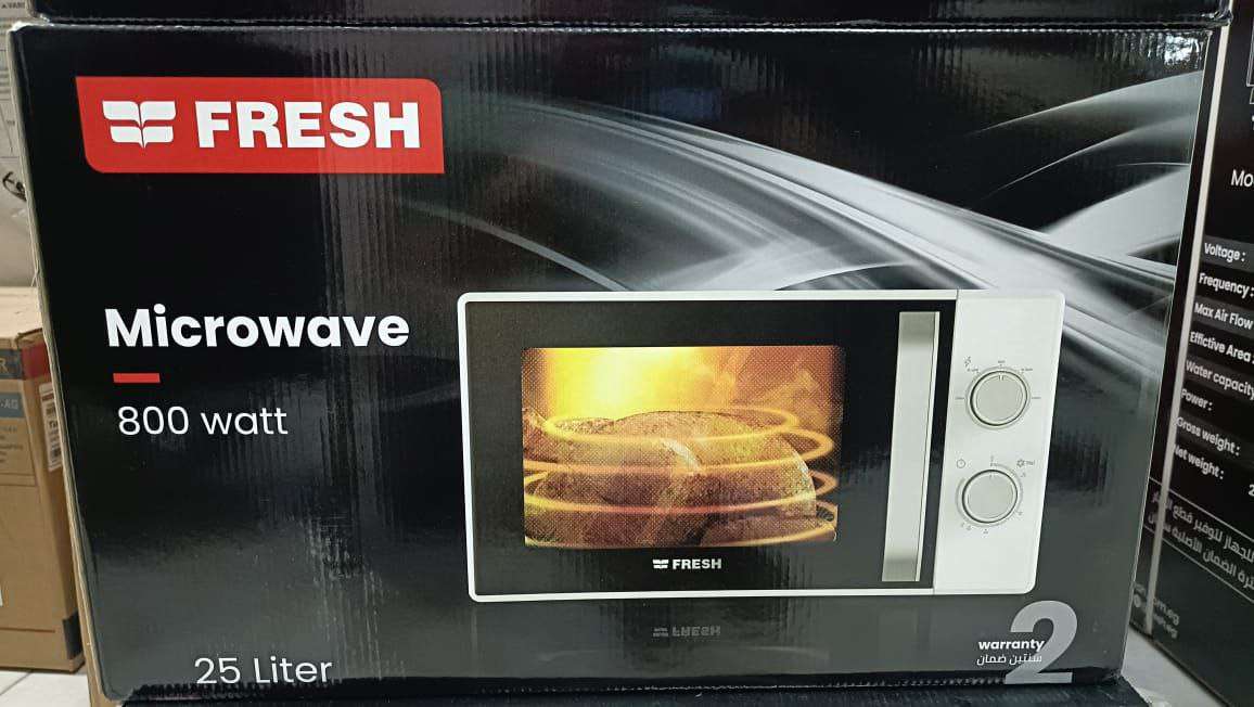 ميكرويف فريش 5 مستويات للتسخين تنبيه عند نهاية الطبخ تايمر 35 دقيقة ميكرويف 20 لتر 700 وات بسعر 4650 ميكرويف 25 لتر 800 وات بسعر 5150 المنتج فرز أول ضمان سنتين من الشركة