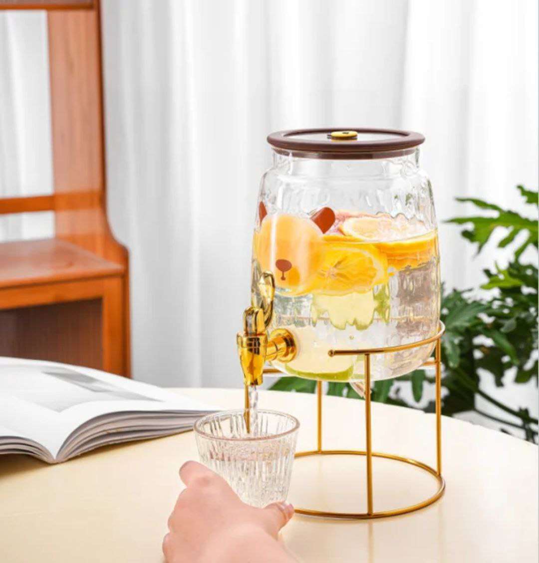 ديسبنسر عصير، 🐻❄️🐻❄️ للعصائر والمشروبات 😋خامه بيركس بيور شفاف كوالتي ممتاز مزود بحامل معدن جولد + حنفية جولد👌 الغطاء زجاج نقي مزود بجوان سيلكون داخلي محكم الغلق..بمقبض شكل دبدوب شيك او
