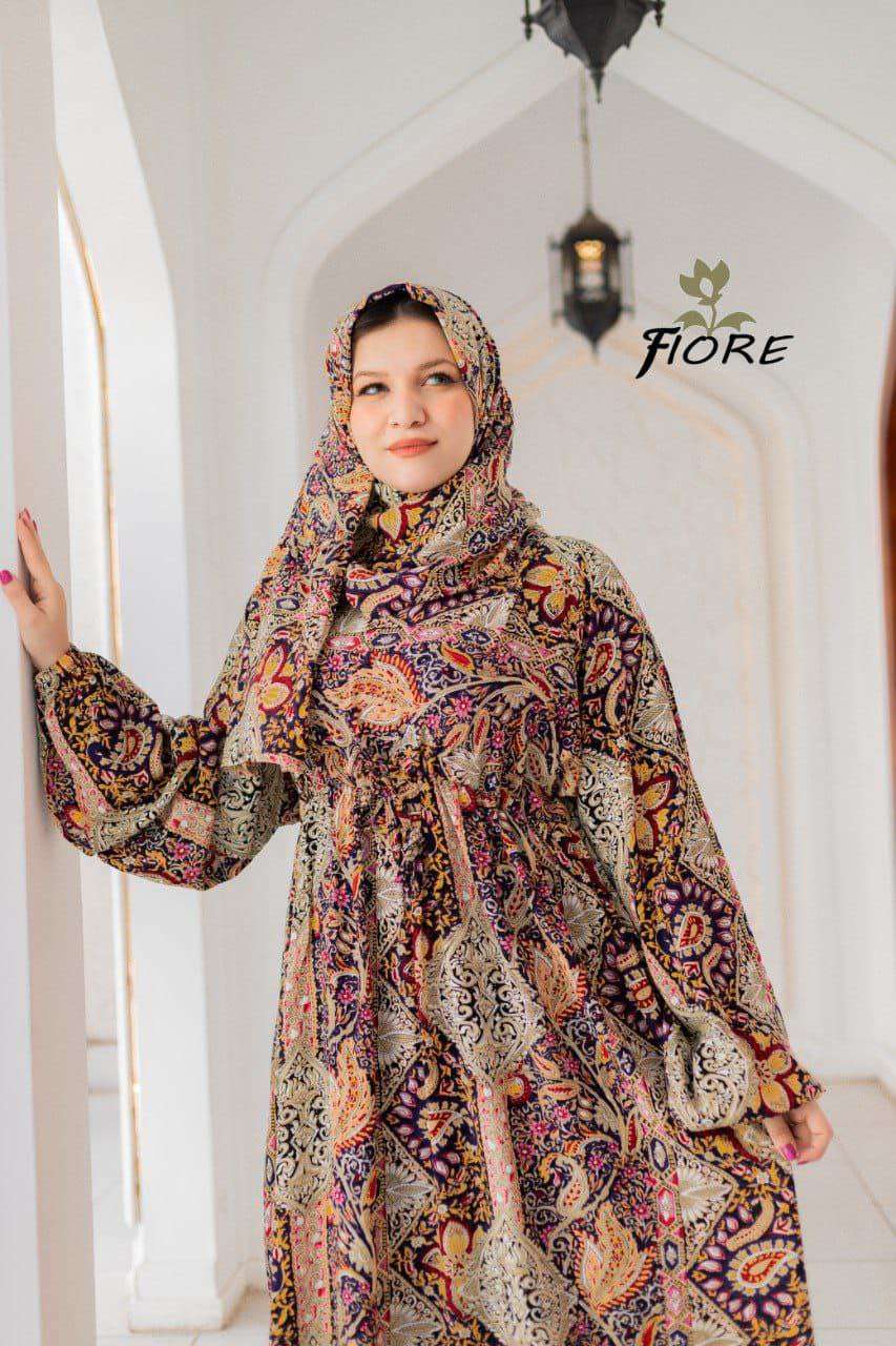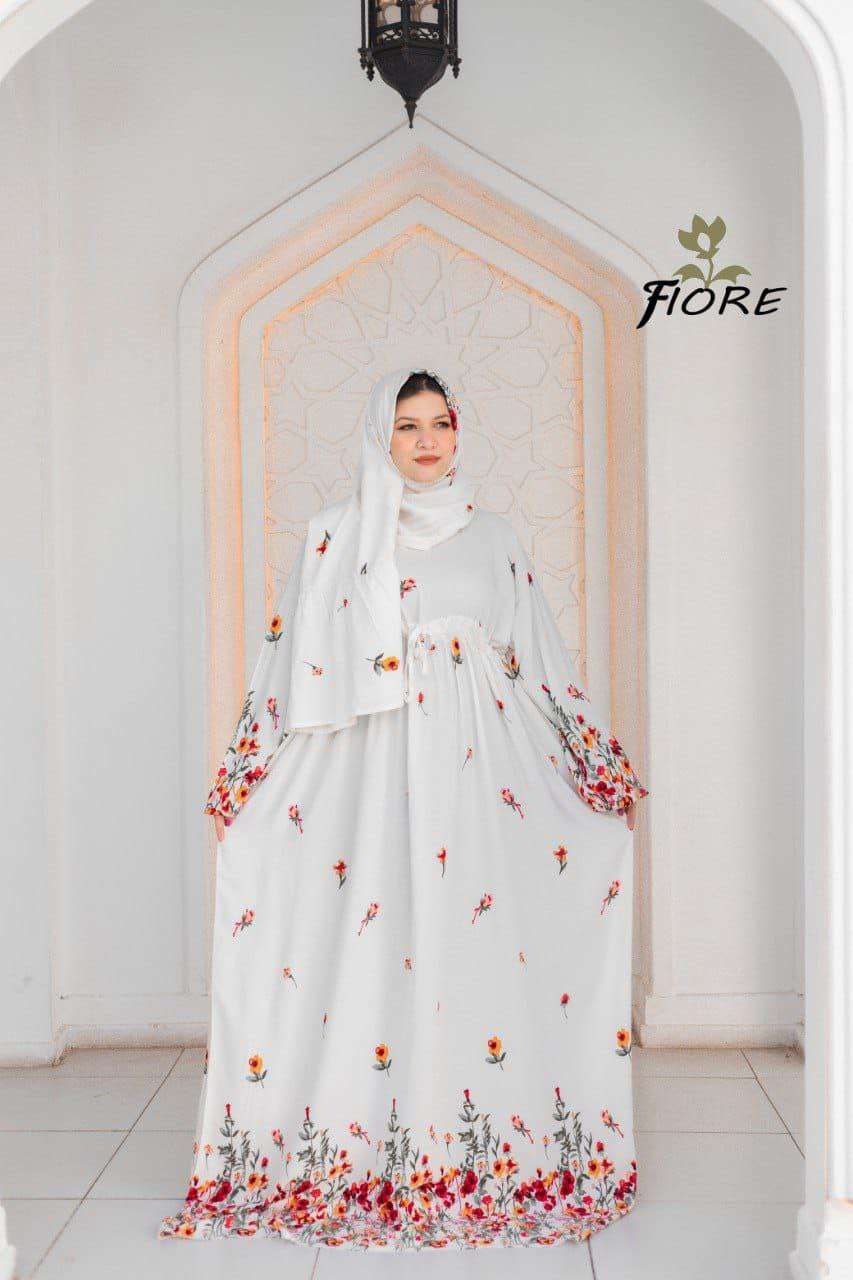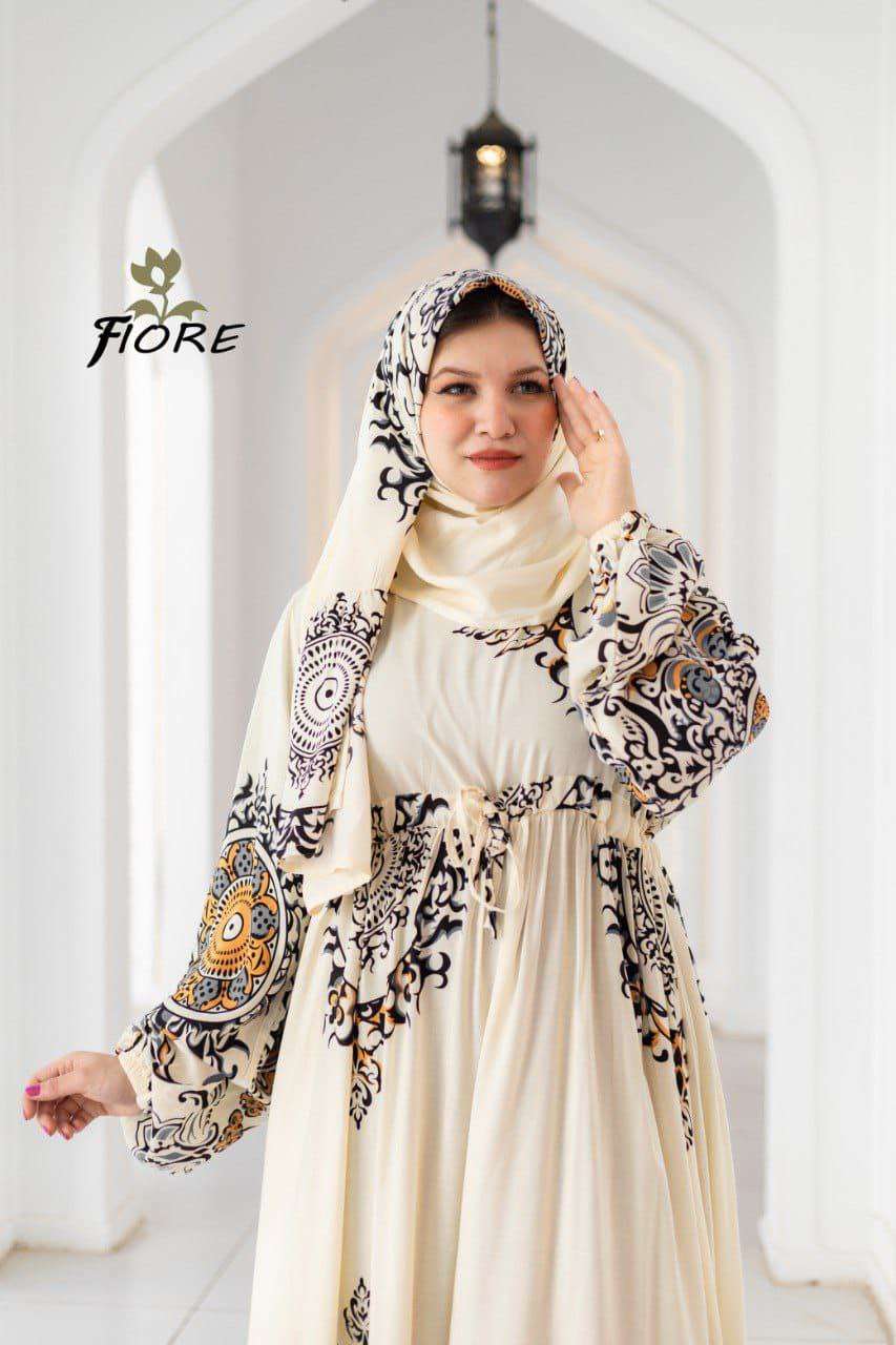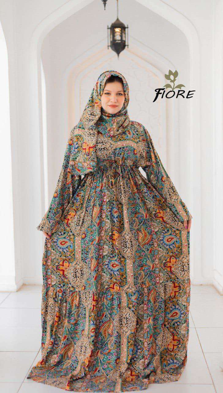إسدال دريس من فيوري الخامه فسكوز مستورد معالج ضد الانكماش طرحه كبيره متصله يلبس ل ١٣٠ك بحزام لتظبيط المقاس