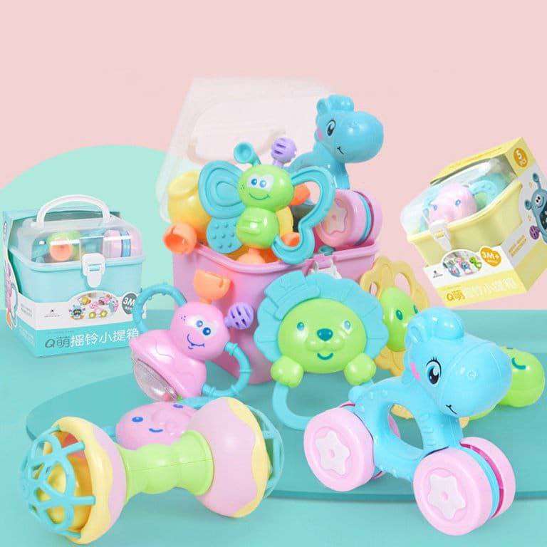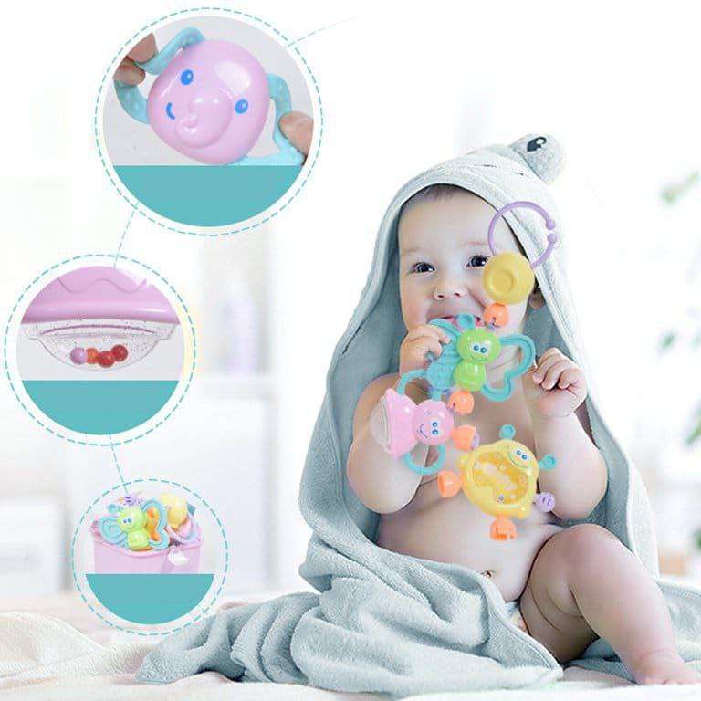 البوكس الأكثر شهرة على الفيس 💥 بحجم جديد 🔥🔥 صندوق شخاليل للبيبى 🤩 بوكس شخاشيخ مستورد 💯 (5 قطع بعضاضات سليكون👄👶 ) Baby rattles 👈 ⬅️ لجذب وشد انتباه البيبى 👶 وتسليتة ⬅️ خا