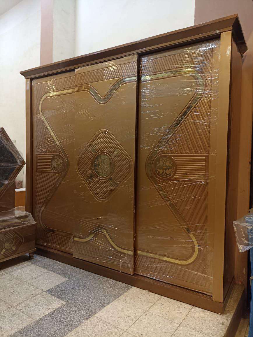 مهرجان غرف النوم وخصومات جباره غرف نوم خشب كبس محمل اقتصاديه مكونه من دولاب 250سم سرير 150*195 سم اتنين كمود وتسريحه