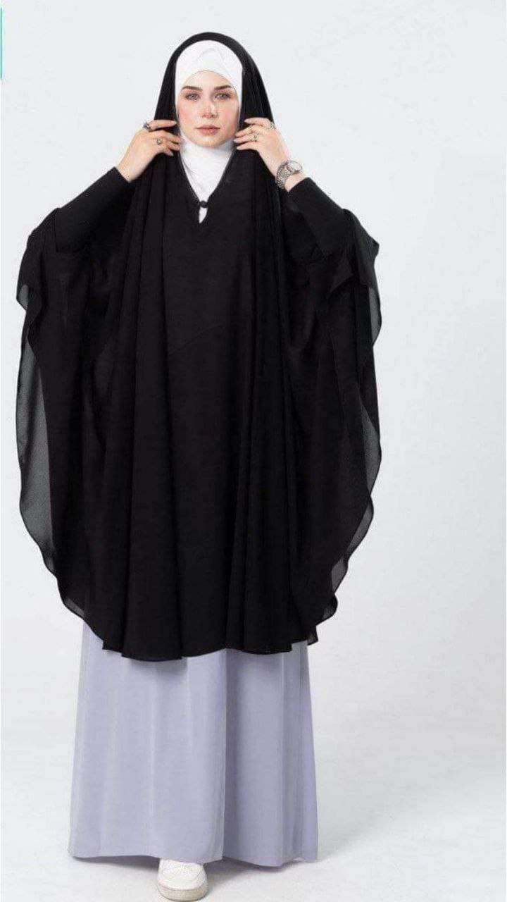 عروووض عروووض 🔥 🔥 🔥 ✨الموديل: كاب سبعة ✨ الخامة: شيفون ليزر ✨تقفيل لوكس ✨اللون' اسود بلاك المقاس XL 🌸بسعر 450 بدلاً من 500🔥🌸