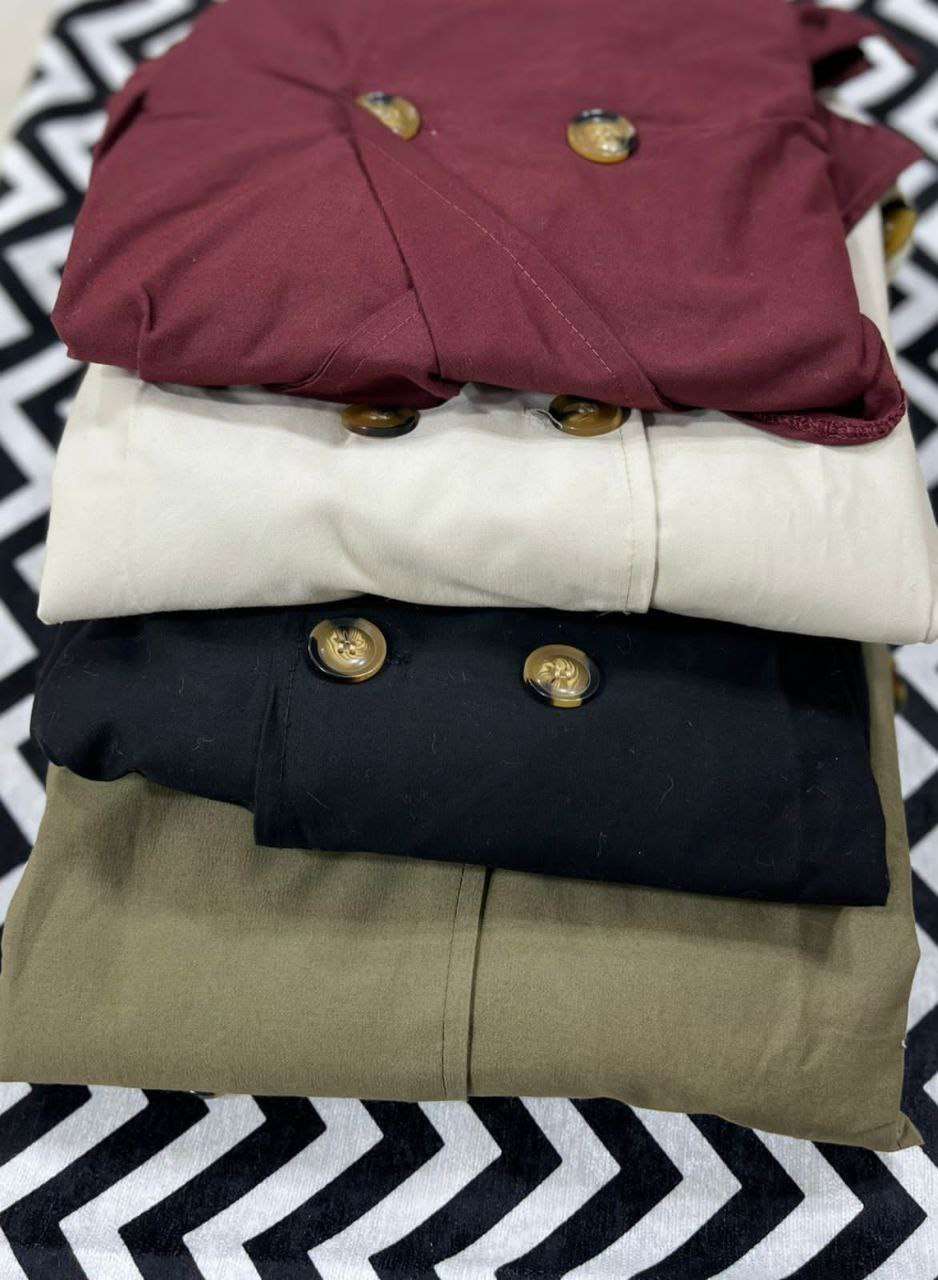 الترينش كوت عندنا غير😉 ماتريال جبردين قطن خطيررر ون سايز من 60 ل 85 9 الوان تجنن اوف وايت / بيج / كافيه / زيتي / اسود / بني / بورجندي / أخضر / بترولي حرفيا اقل سعر في مصر السعر ب 400 ج ب