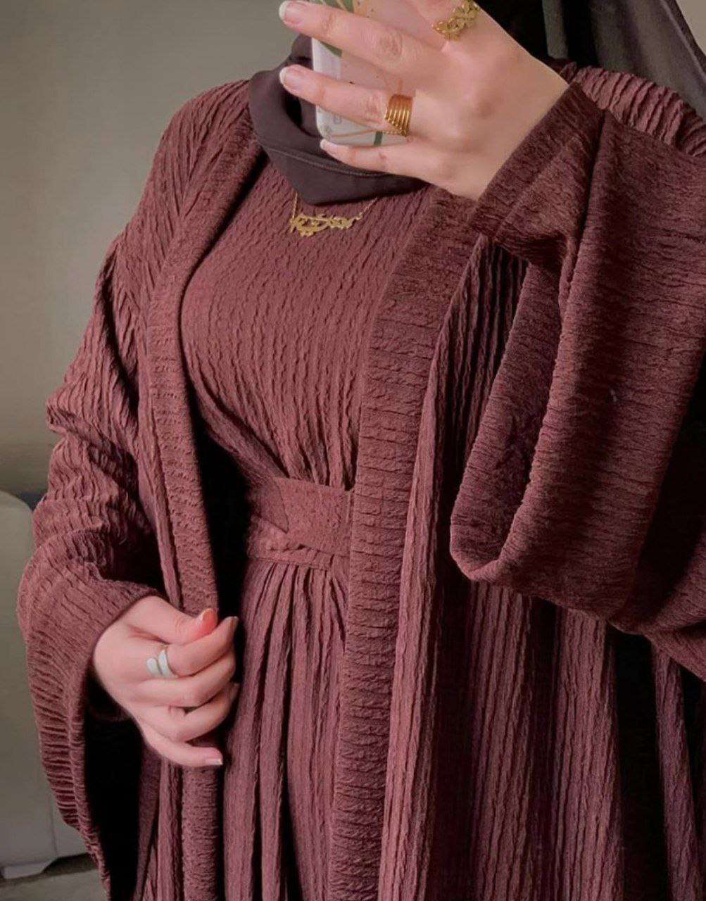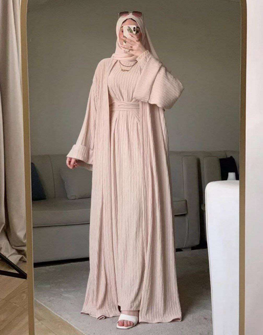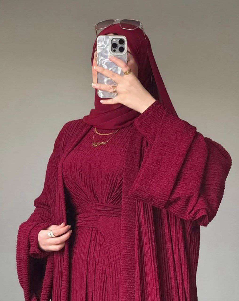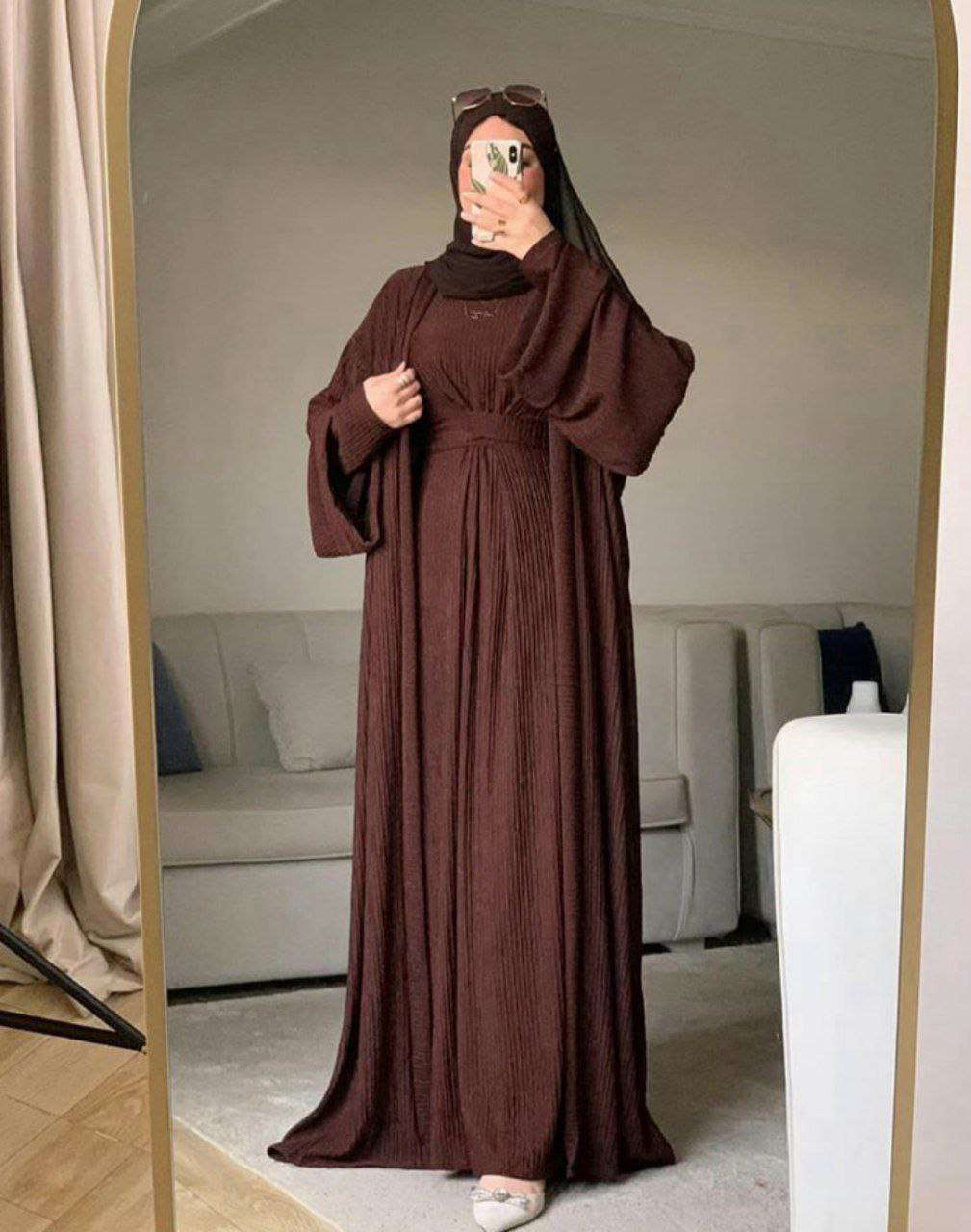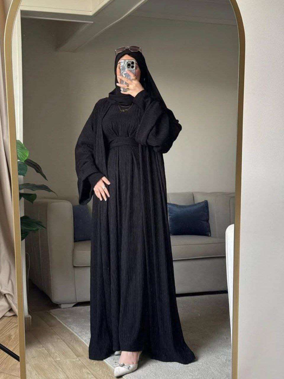 اشيك عبايه هتتلبس في رمضان 🔥🔥🔥🌙 عبايه 3 قطع القفطان والبيزك دريس والطرحه عملنلكم منه الاسود والمارون والبني والبيج