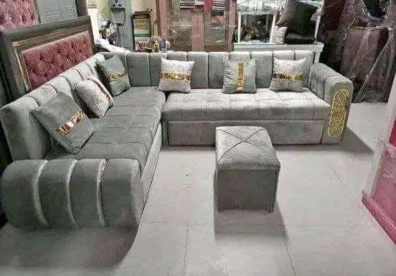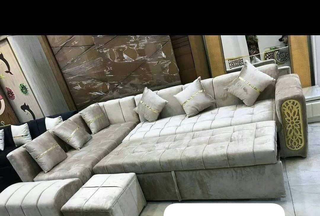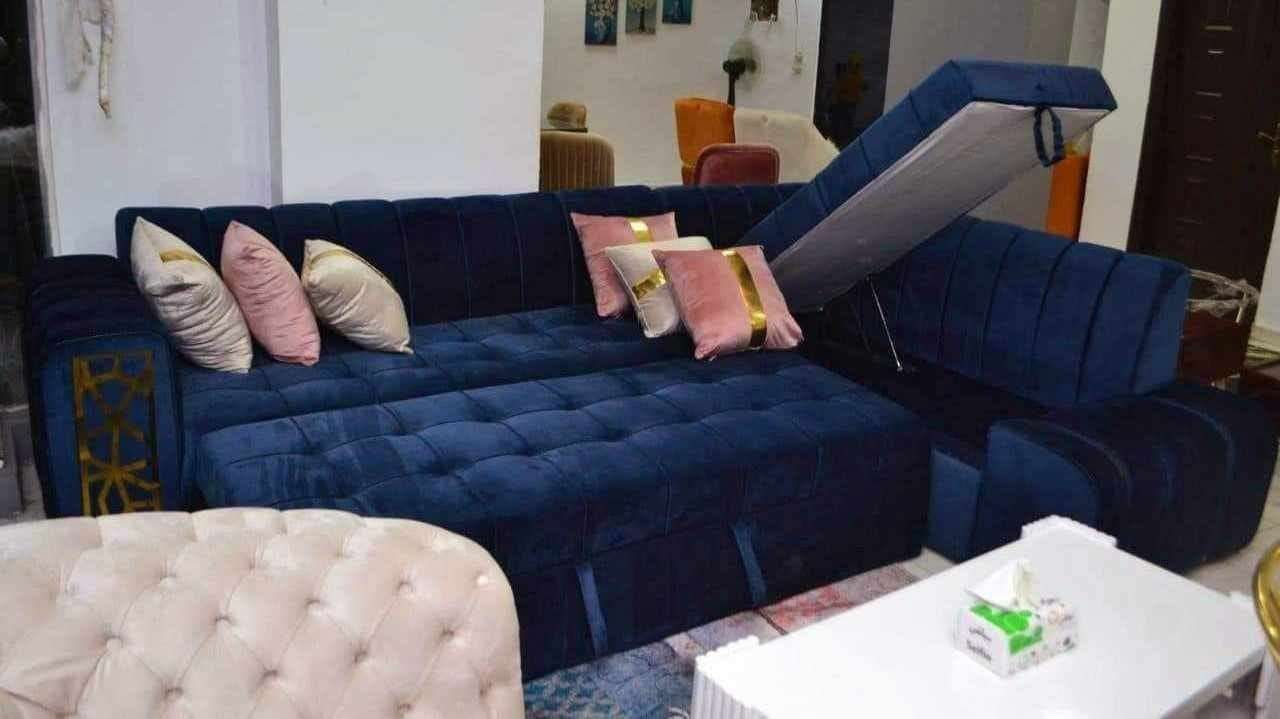 ركنه سرير عمليه خشب زان ابيض قماش هامر سفنج 30 بتفتح سرير عاين قبل الاستلام اثاث 2