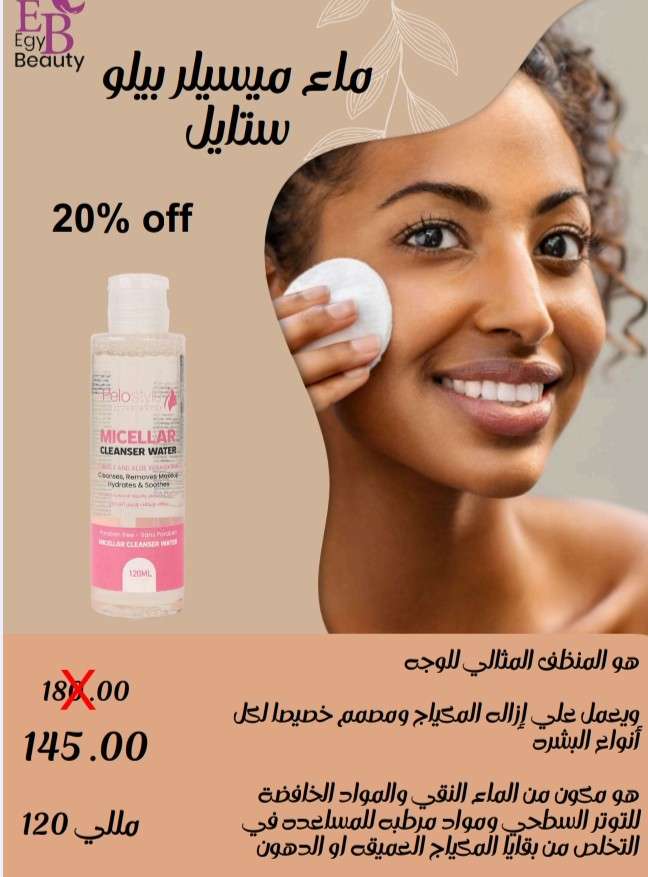 ماء ميسلر لتنظيف البشره١٤٤ج.م١٨٠خصم ٢٠٪