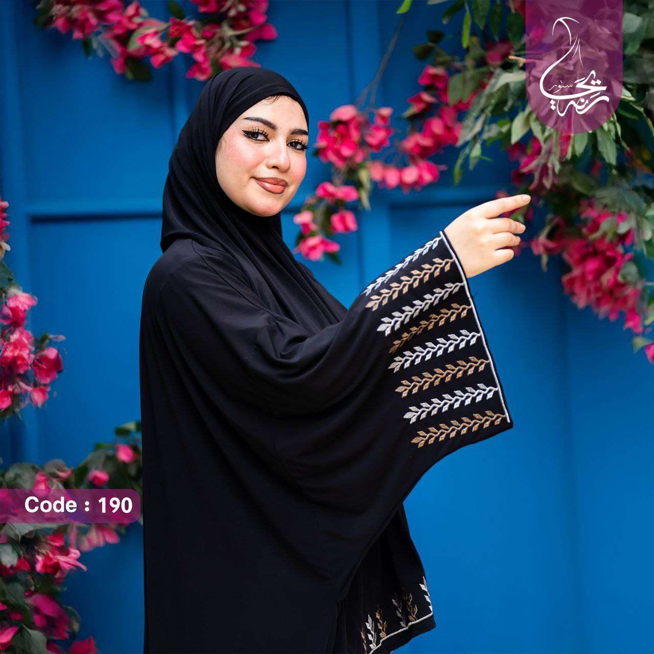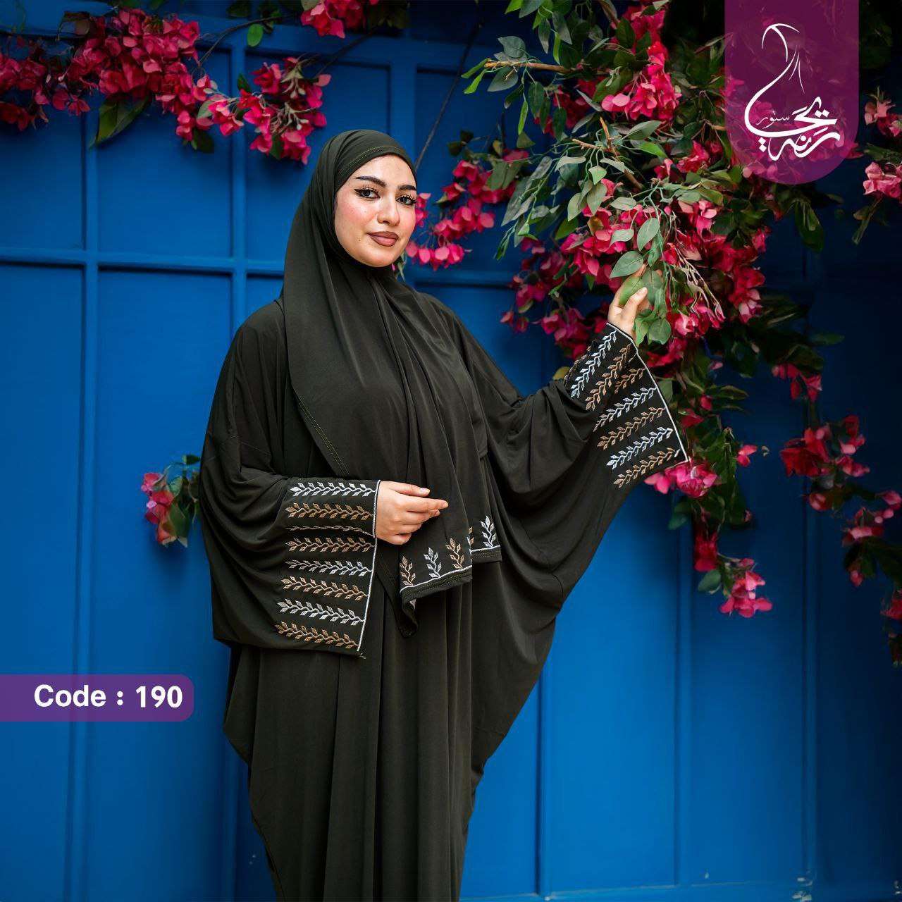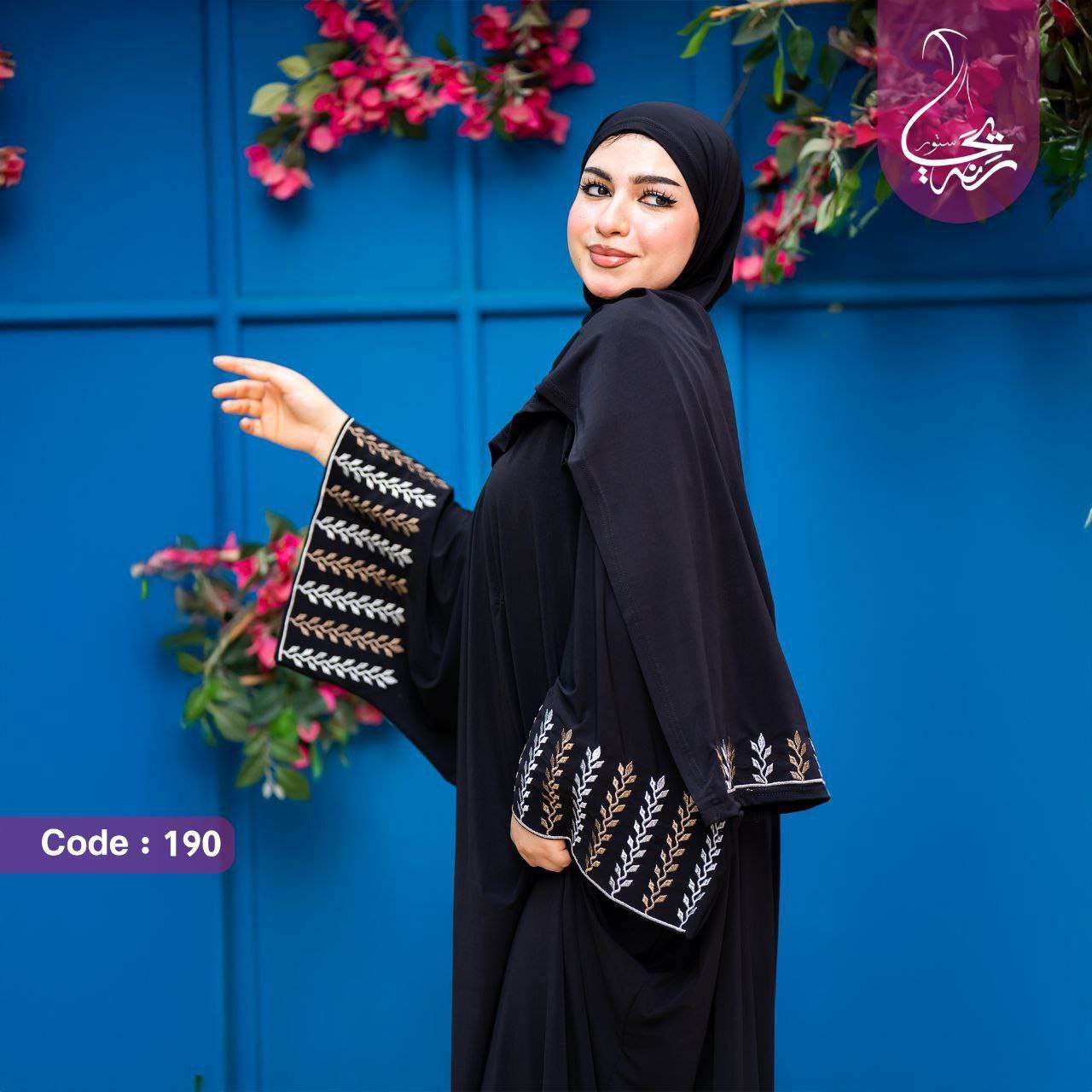 ⬅️ كوليكشن 2025 من مصنع ريحانه 🔥🔥 كود 190 اسدال تحفه في التصميم و الشياكه كم عبايه خليجي واسع بكبسوله يتلبس واسع وضيق تطريز سيرما علي الكمين طرحه متصله وحزام داخلي وان سايز يلبس لحد 120