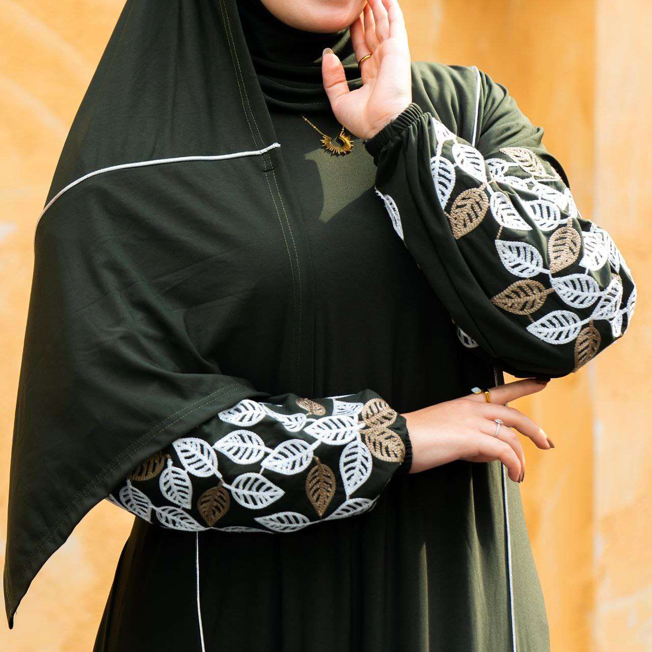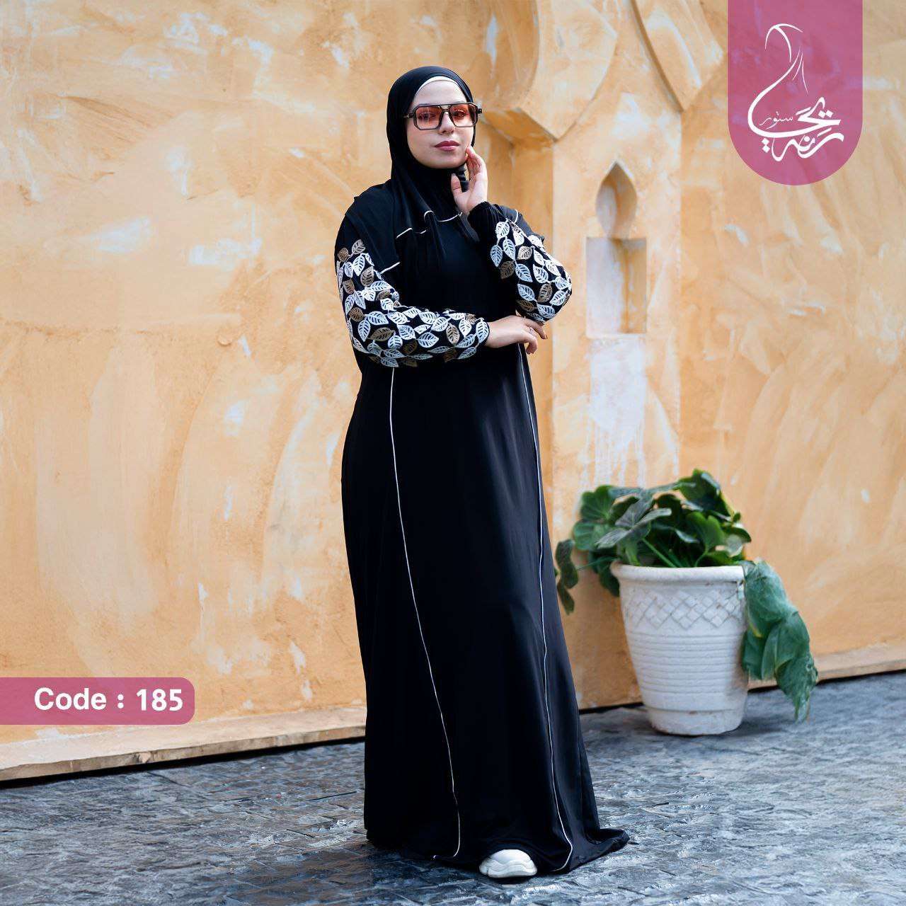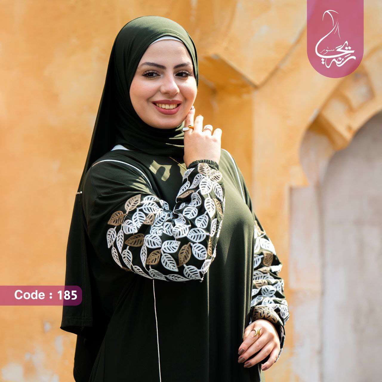 ⬅️ كوليكشن 2025 من مصنع ريحانه 🔥🔥 كود 185 اسدال استايل دريس بحزام خارجي خلفي شريط فضي بطول الاسدال تطريز شنيط ( كردون ) لونين كافيه × اوف وايت علي الكمين طرحه منفصله وان سايز يلبس لحد