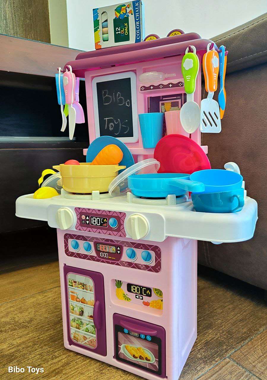 🌸 مطبخ بيطلع بخار حقيقي والحنفيه بتنزل مايه بشكل ولون جديد 🌸 ♥️ مطبخ مودرن بشكل جديد 🧡 ارتفاعه 50 سم تقريبا 💛 باللون ال purble المميز 💚 بيجي معاه سبوره وعلبه طباشير وممسحه 💙 الثلاجه والف