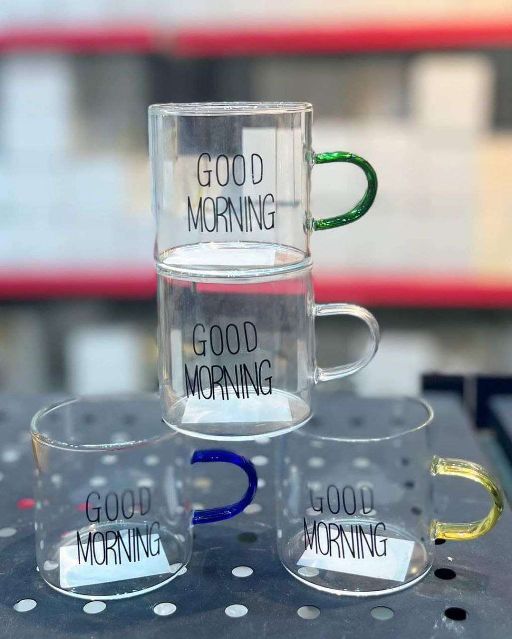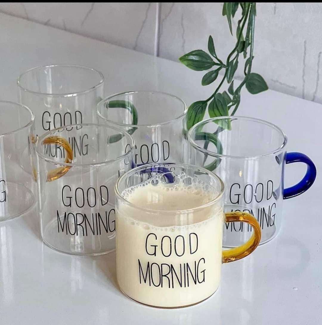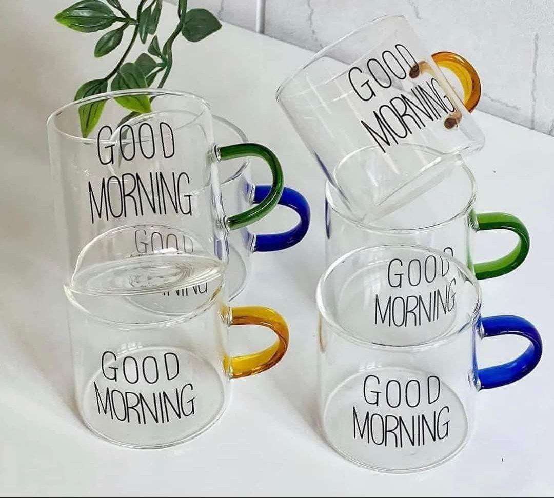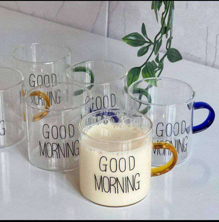 الجديد والحصرى .. طقم مج قهوه جود مورنينج الطقم 6 قطع مستورد فنجان زجاج بيركس حراري الصور علي الطبيعه كل مج بيد لون مختلف ❤️ الطقم 6 قطع 👇 مقاس 200, مللي بسعرررررر 135ج 🔥�