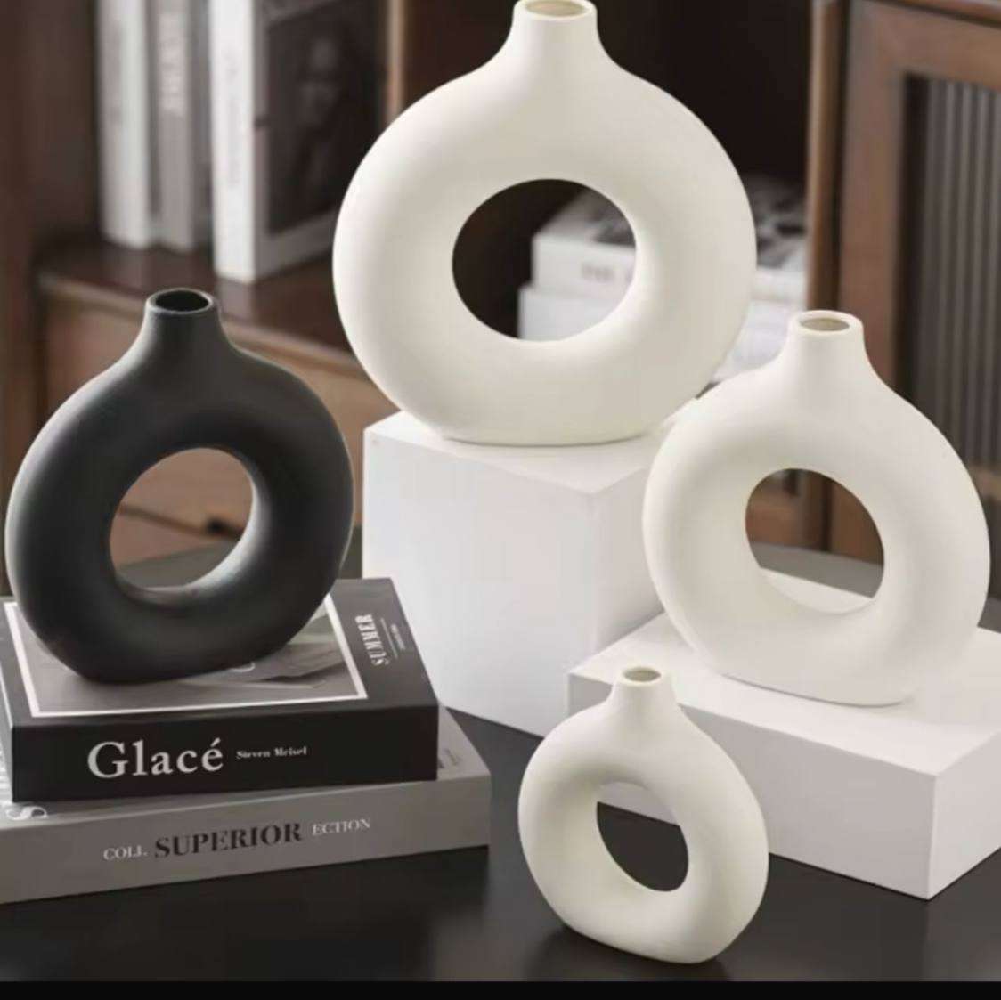 🔴 تصميم عصري يضيف لمسة جمال إلى ديكور المنزل . 🔴 الفازات عمرها طويل و متينة كونها مصنّعة بأجود أنواع الخامات . 🔴 متوفرة بعدة ألوان تناسب جميع الديكورات (بيج - ذهبي - أسود - أبيض) . 🔴 الطقم ثلاث