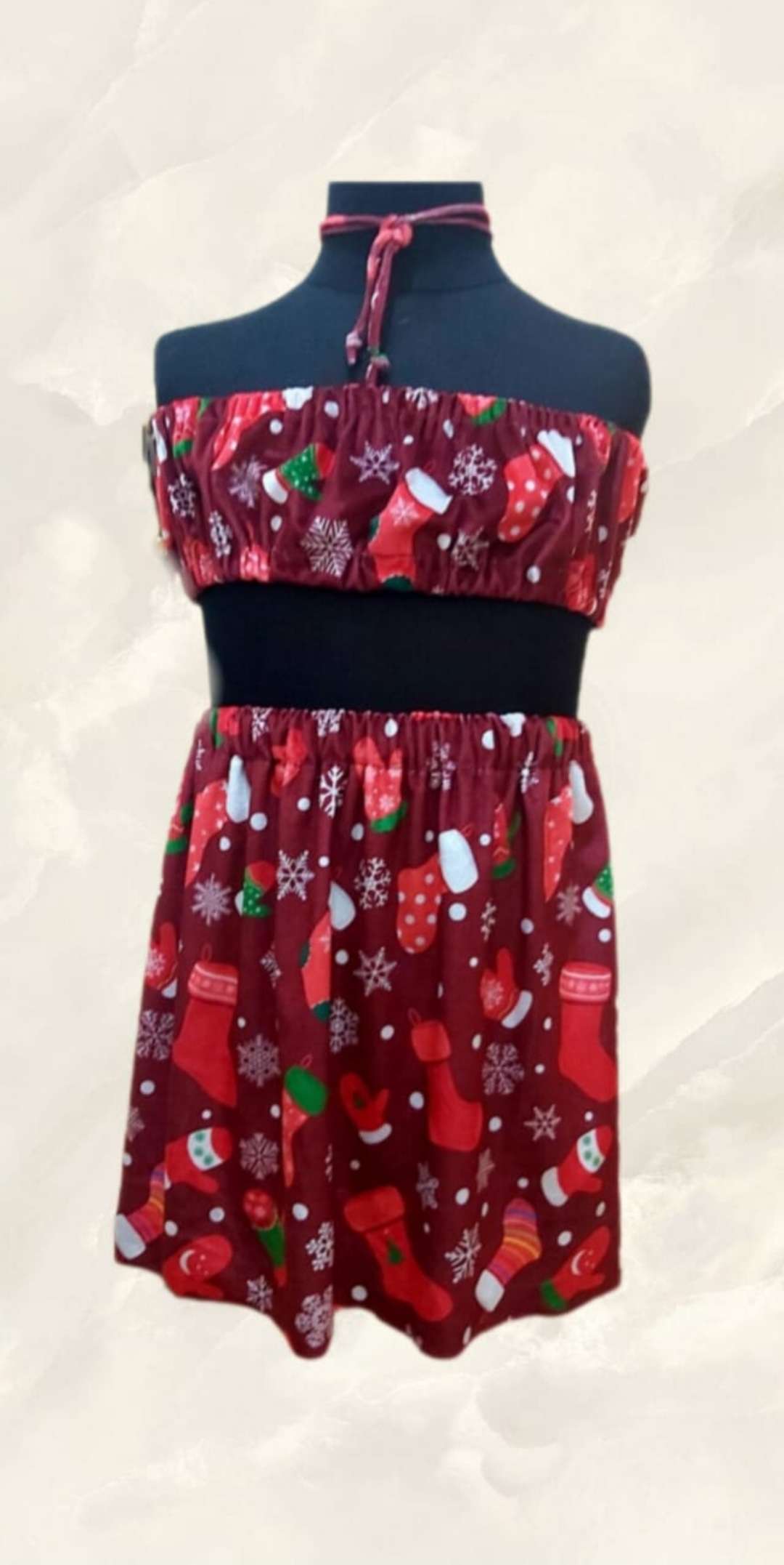 فستان بيت بسيط قطيفه فرنساوى مزخرف برسومات راس السنه