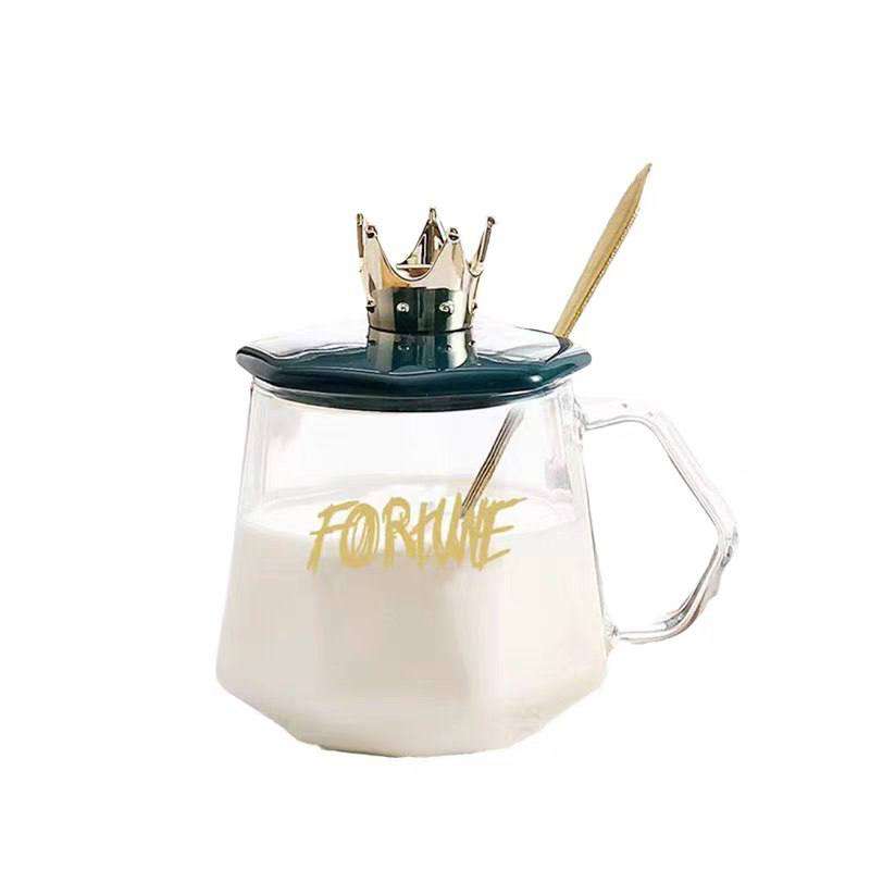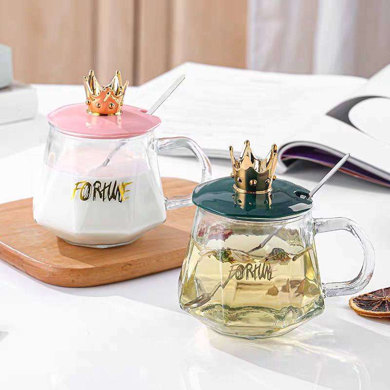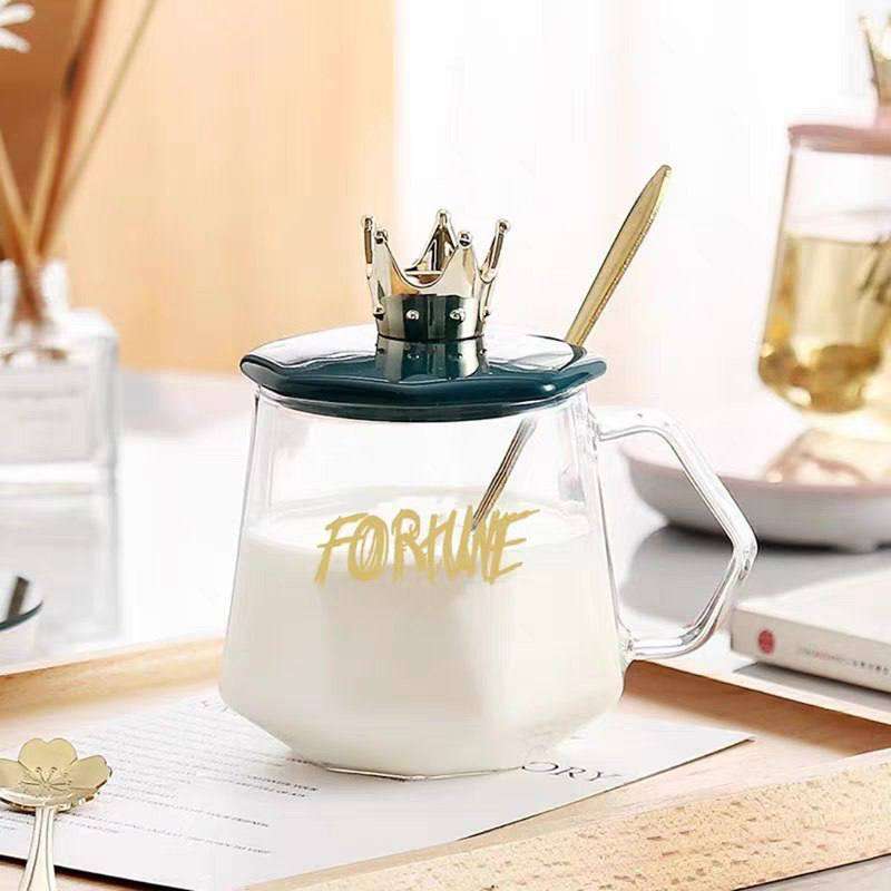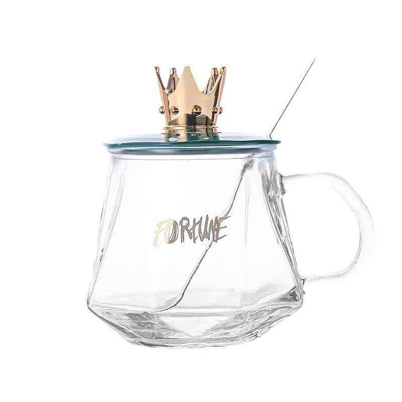 المج التاج الذهبي ❤️ مج تاج وجماله مج زجاج غطاء اكلاريك تاج ومعلقه استانليس نفس شكل الصوره بالظبط السعه 300 مللي
