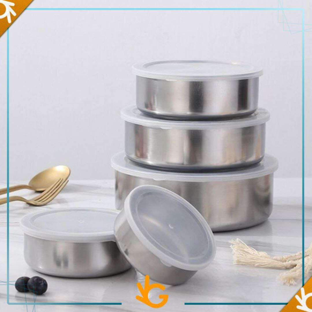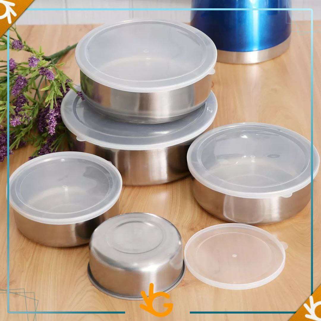 طقم علب ثلاجة استانلس 5 قطع بغطاء شفاف محكم الغلق مقاسات العلب 10/12/14/16/18 سم