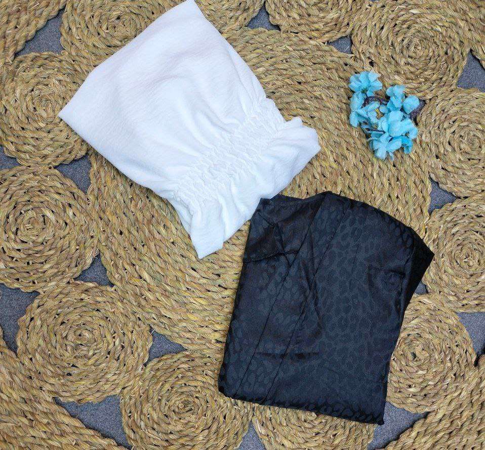 الموديل⚜ طقم قطعين 😘 الماتريال⚜ ستان ×سي واي الجودة 💯💯 المقاس⚜وان سايز السعر⚜450فقط حصرى كود 077 H