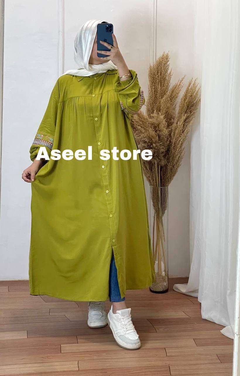 الموديل ✨️مينى دريس تطريز تحفه الخامه✨️ كتان مستورد المقاس✨️ وووووان سايز ل 85 ك السعر ✨️430 فقط 🔥 كود ✨️ Ray70