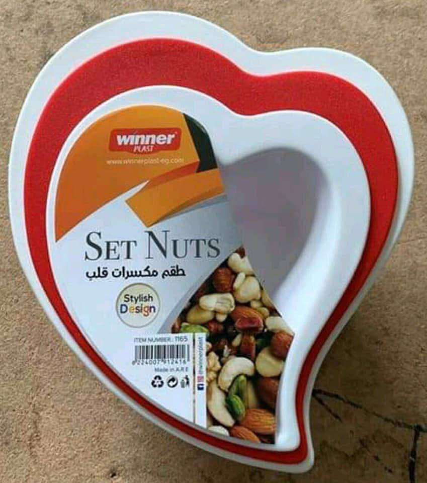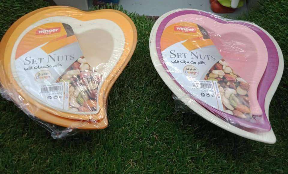 طقم طبق مكسرات وسلطة شكل قلب خامه ثقيله جدا البكت 3 اطباق مقاسات مختلفه