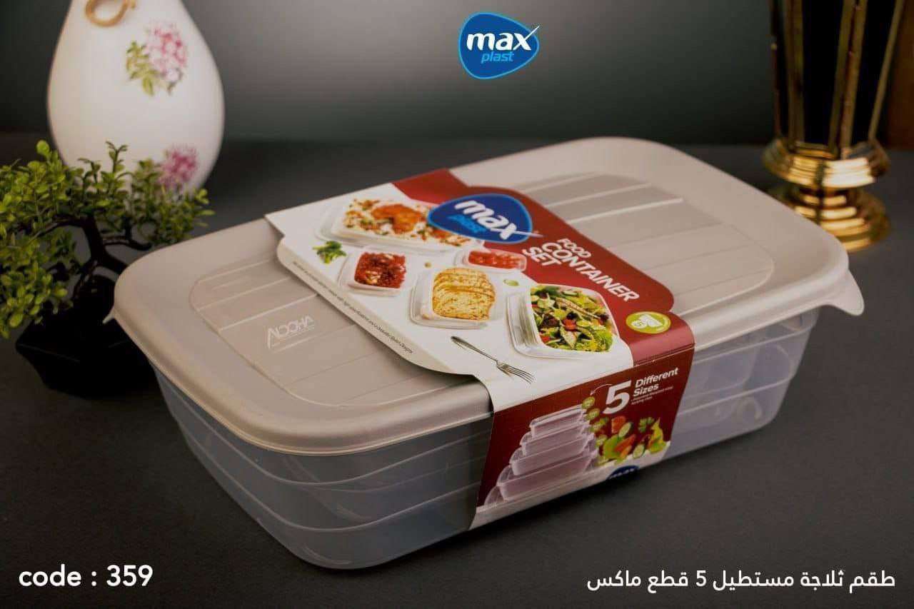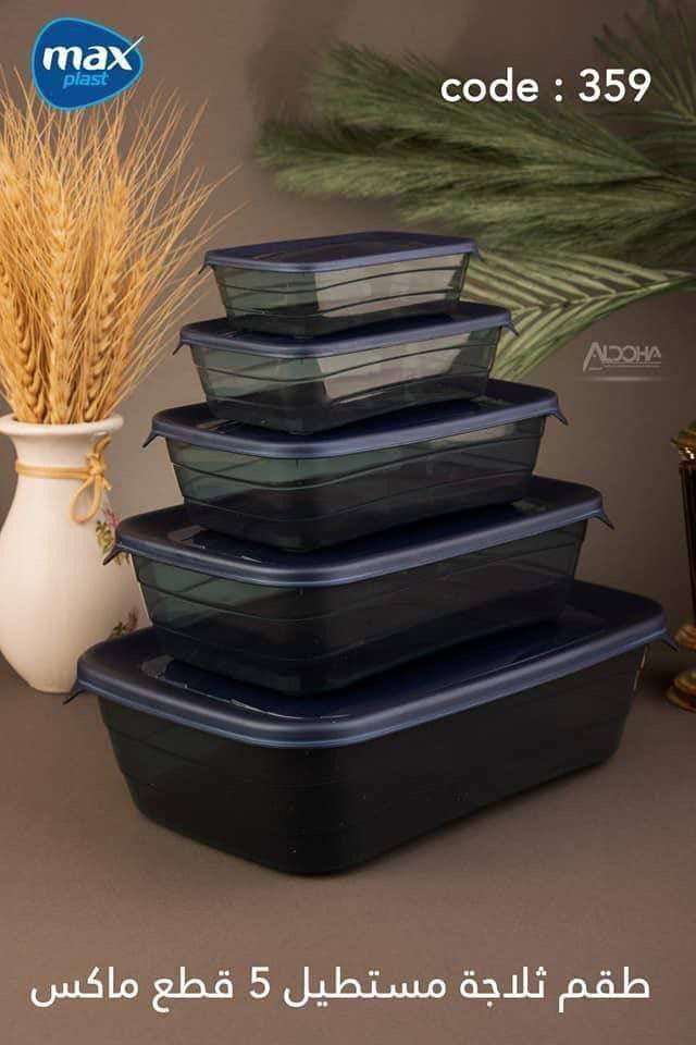 طقم علب ثلاجة مستطيل 5 قطع ماكس الطقم من البلاستيك الصحي الطقم 5 قطع مقاسات 250 /500 /900 /1500 /3000 ملي