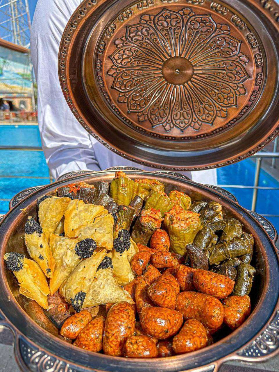 صينية وسرفيس العزومات الجبارة 🐔🦆 ✅ بغطاء عربي نحاسي لتقديم الكبسة والمندى والحمام والموزة وكل المشويات ✅سرفيس كبسه🙈لتقديم الكبسة والمندى وكل المشويات مقاس 40 ســـم مستورد عالي الجوده..خامه ث