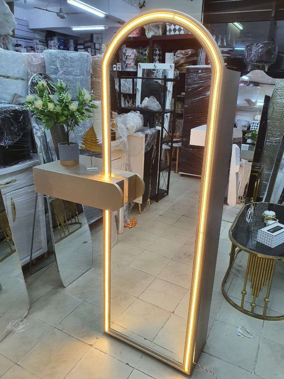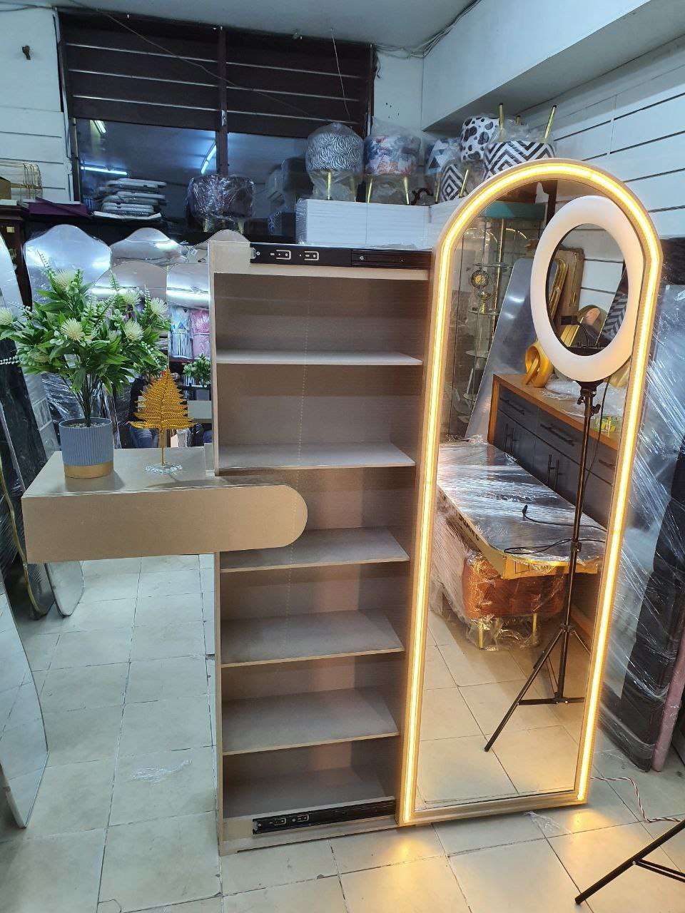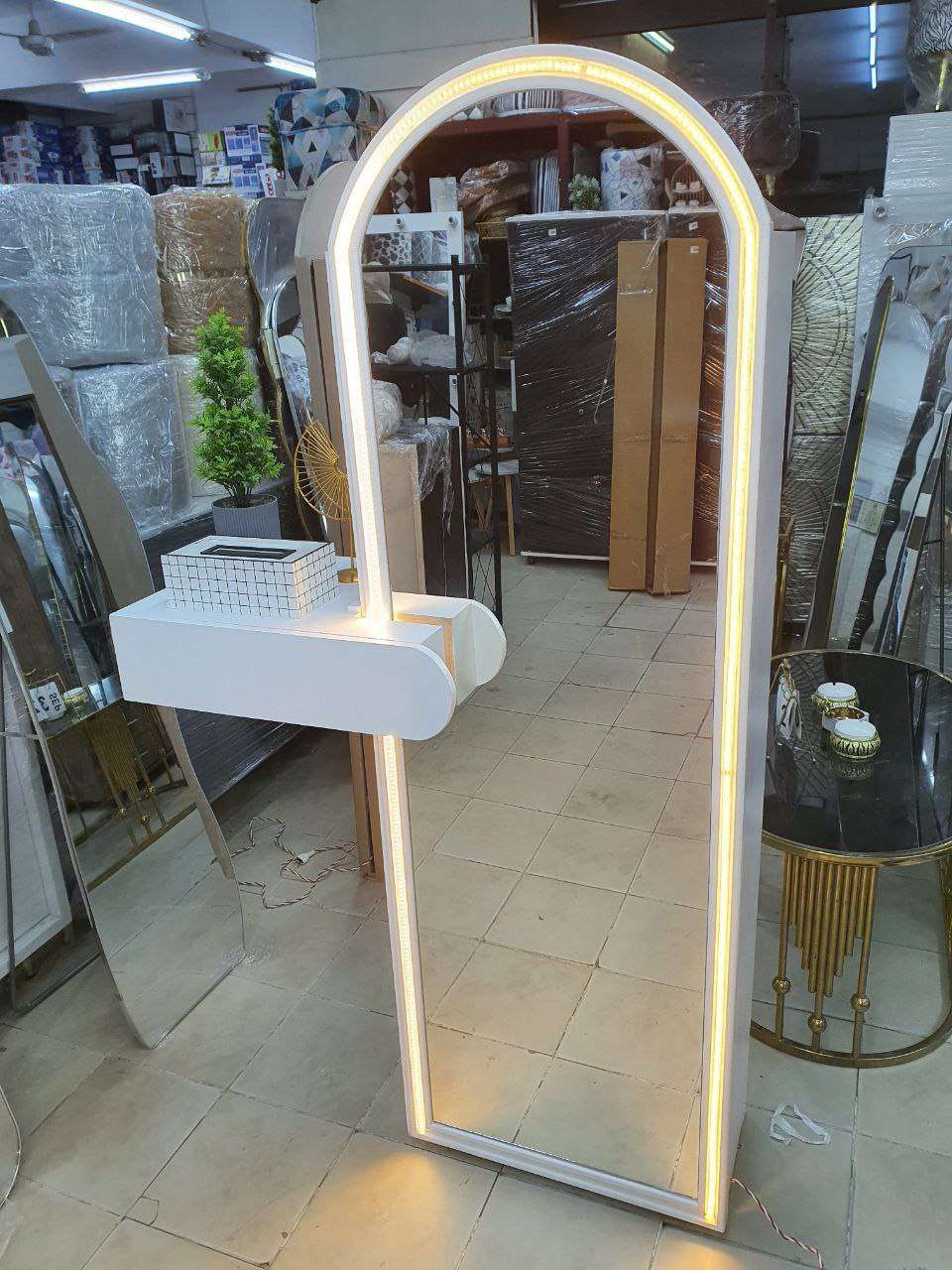التسريحه الليد بمكتبه جانبيه ١٨٠ سم طول عرض المرايا ٦٠ المكتبه ٤٠ سم خشب ام دى اف مستورد دي مش مجرد تسريحة، دي قطعة فنية بتجمع بين الشياكة والعملية! تصميمها الأنيق بإطار الليد اللي بينور المكا