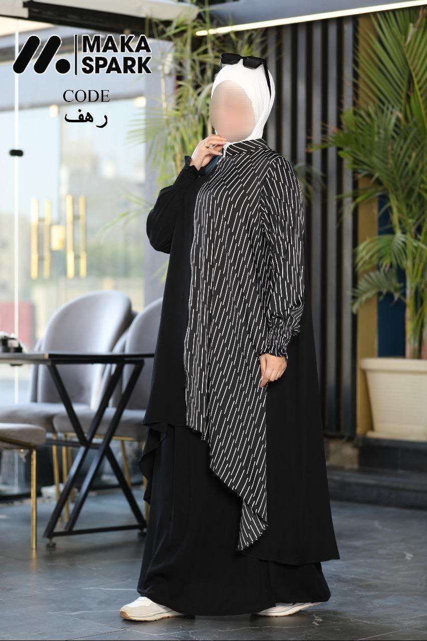 جديد من براند مكه سبارك موديل "ادناء رهف " الادناء مكون من قطعتين ( جيبه + كاب)👗 ادناء سوسته بشكل جديد و أنيق بنص منقوش يعطي شكل مختلف و جذاب و بكم عش النمل🍂 المقاس : Free size