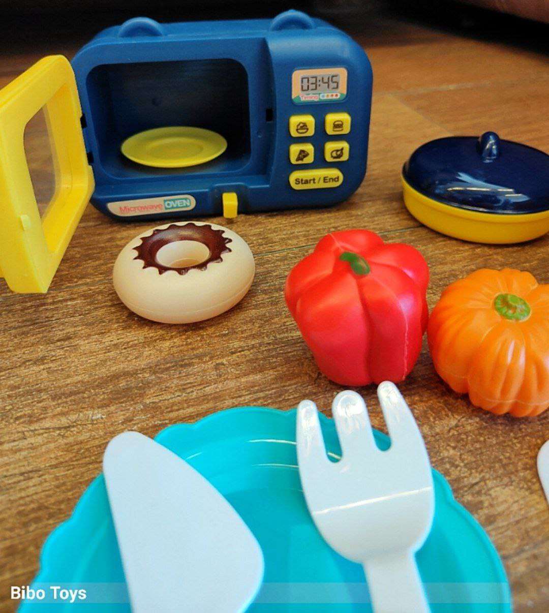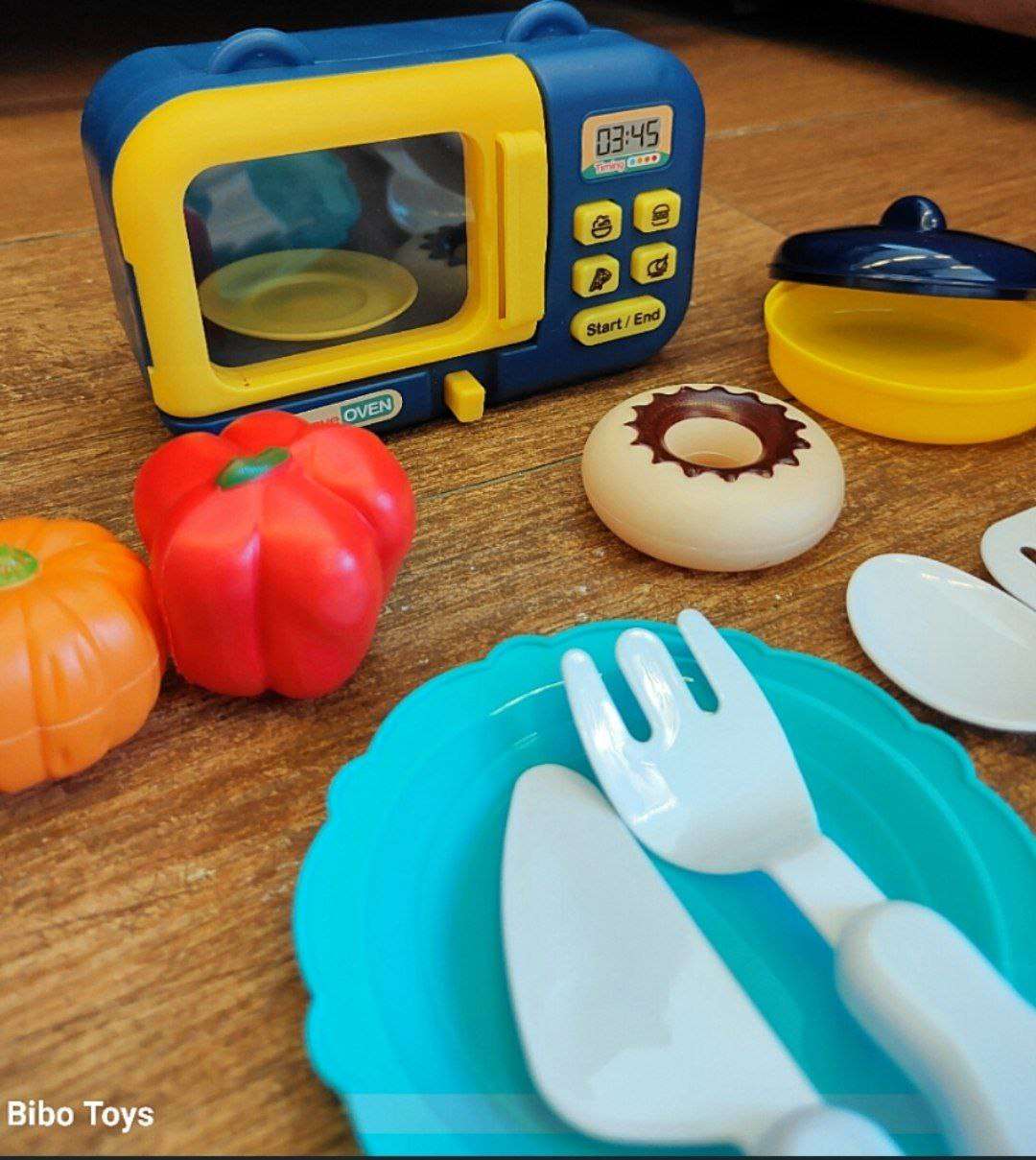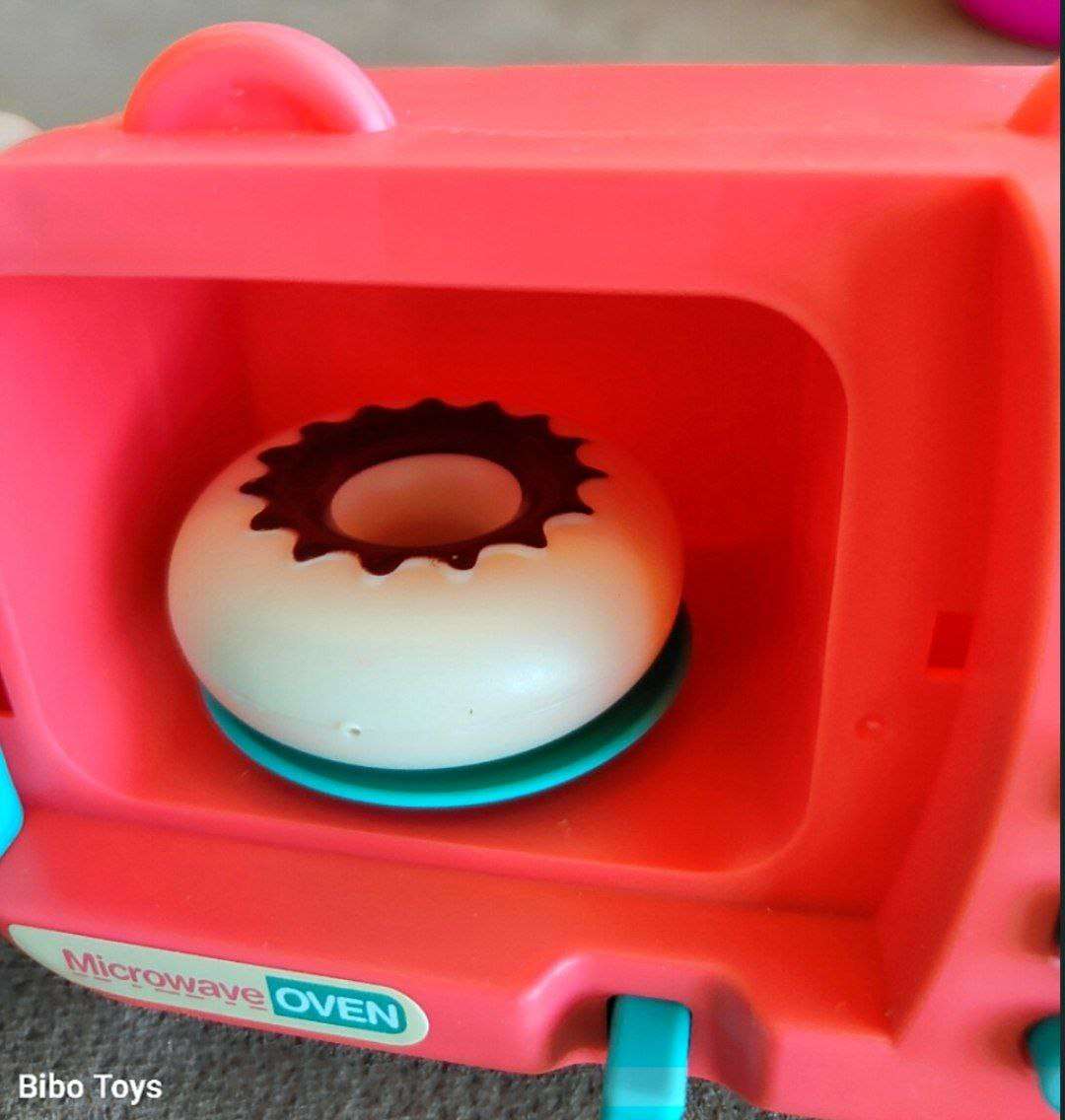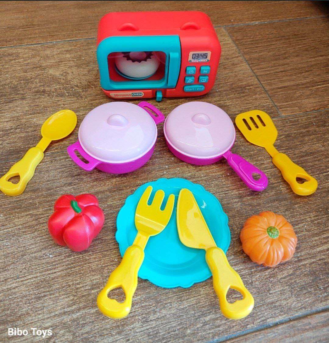 ♥️ ميكرويف مميز جدا لكل اطفالنا عشان يكملو فيه اجهزه المطبخ أو يضيفوه لالعاب المطبخ 🧡 بيجي معاه حله و طاسه و دوناتس و خضار و شوكه وسكينه ومعلقه وطبق 💛 الباب بتاعه بيتفتح وينحط جوا الاكل وبندوس ع