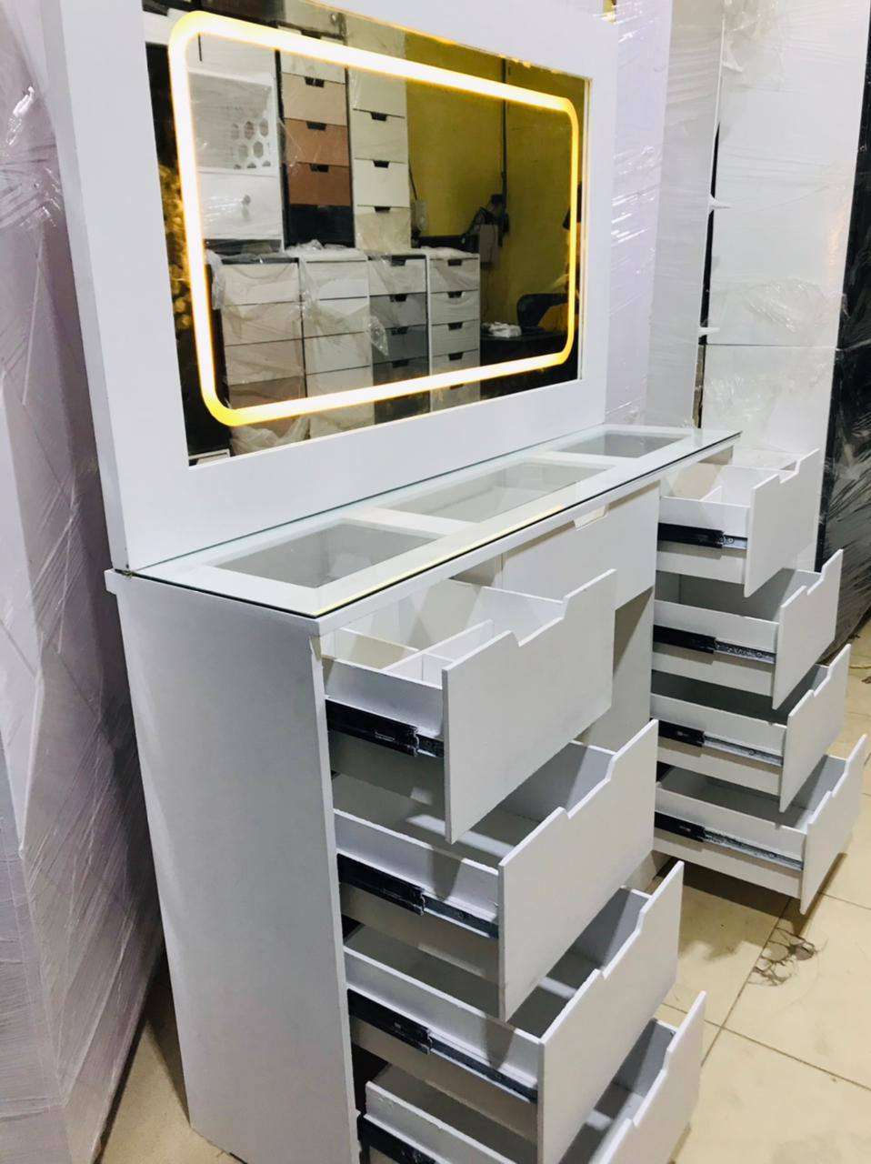تسريحه البشوات😍🔥🔥 ب ليد 9 درج مجره معدن طول165 سم عرض120 سم عمق 33 سم معاها لوح زجاج خامه ام دي اف السعر عرض لنهايه شهر رمضان