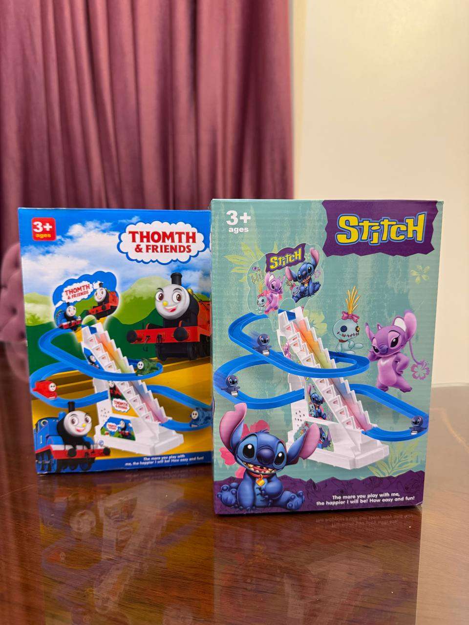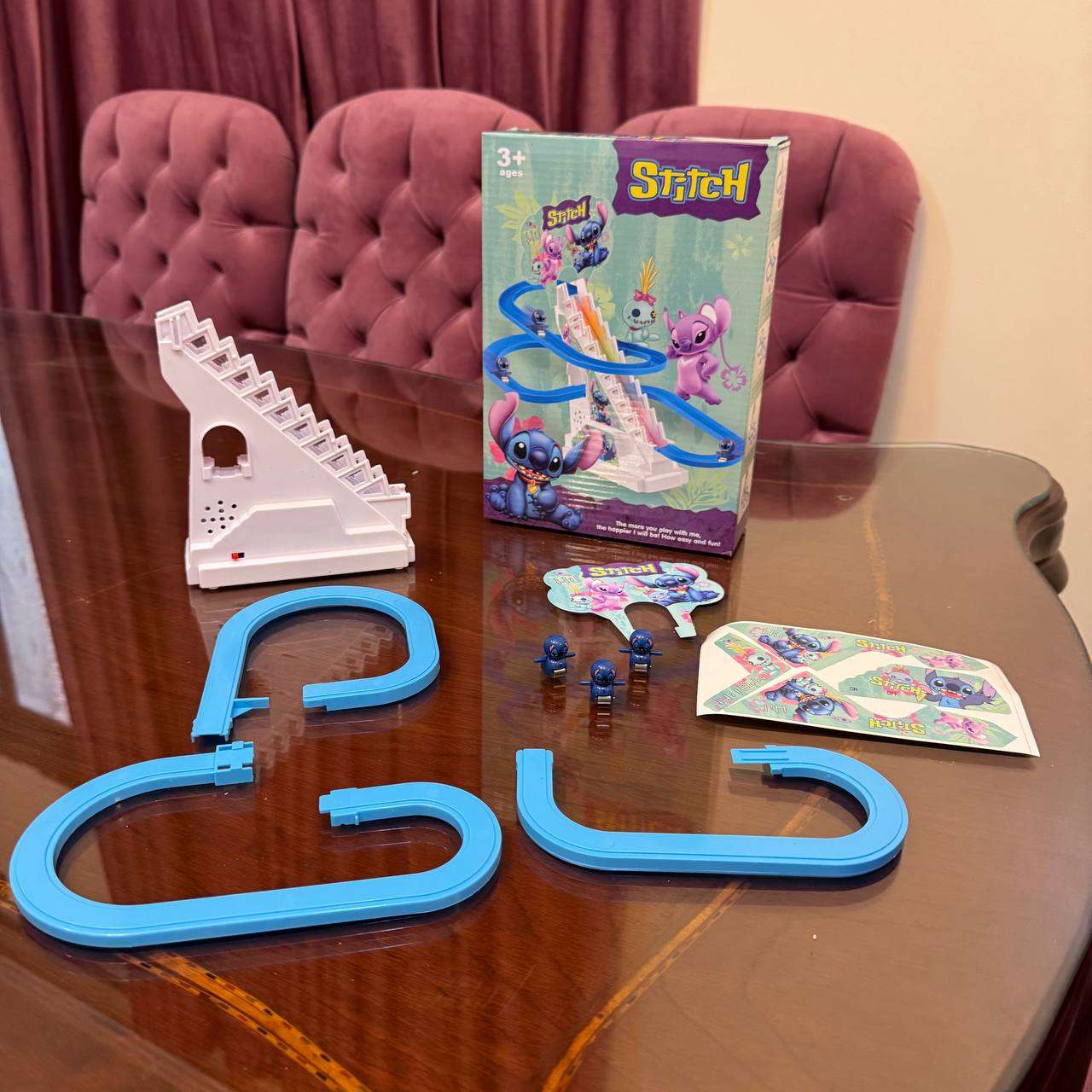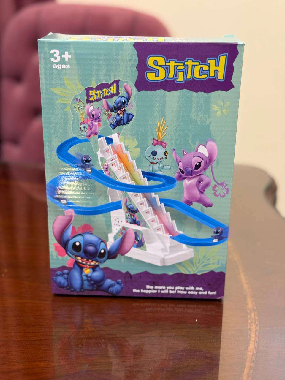 احلى هدية ممكن تقدمها لأطفالك ملاهي استيتش ⬅️ بتشتغل ببطاريات ومن زرار التشغيل on/of هتشغل اللعبة ⬅️ ٣ شخصيات استيتش بتتحرك وتطلع السلم وتتزحلق في حركة مستمرة. ⬅️ هتخلي ابنك او بنتك مبسوطين