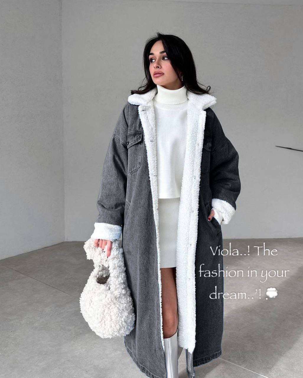 الموديل بالطو جينز مبطن فرو تحفه الخامه 👈 جينز مبطن فرو 👑 المقاس👈فرى سايز من ٦٥ إلى85ك السعر 👈 640 ج فقط 🤩🤩 الكود 0061