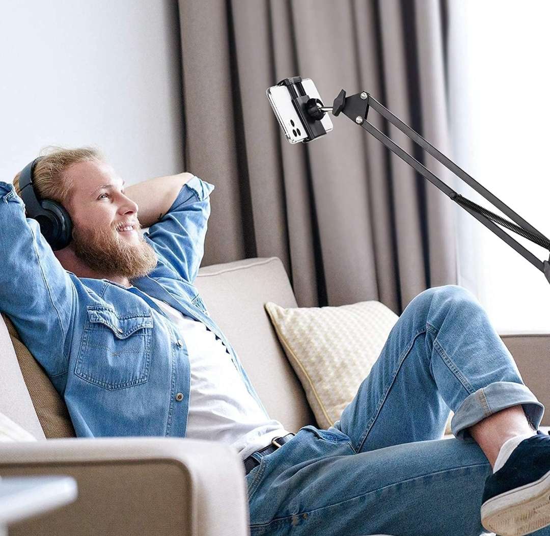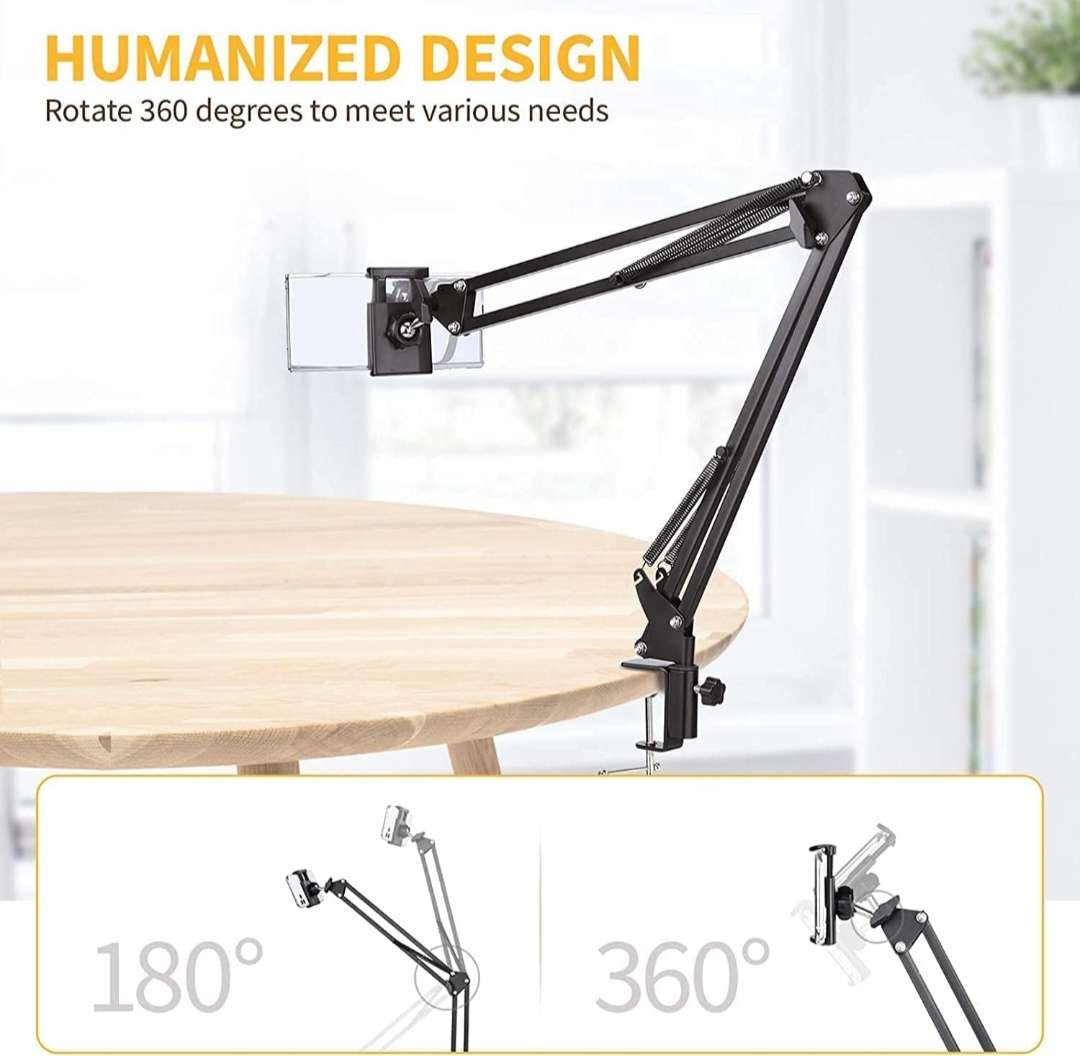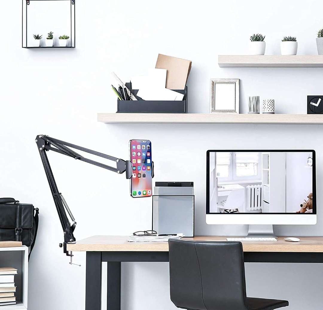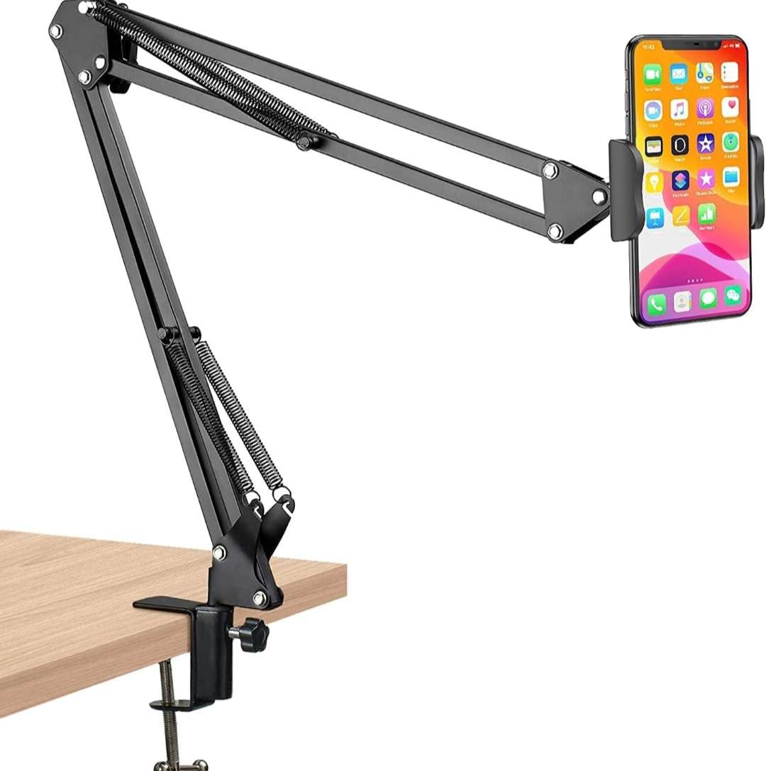 حامل موبايل بمشبك تثبيت للمكتب، حامل عالمي مرن يدور 360 درجة، دعامة لحمال الموبايل بذراع طويلة للموبايلات مقاس 3.5-6.5 بوصة، مثالي للسرير والمكتب والمطبخ