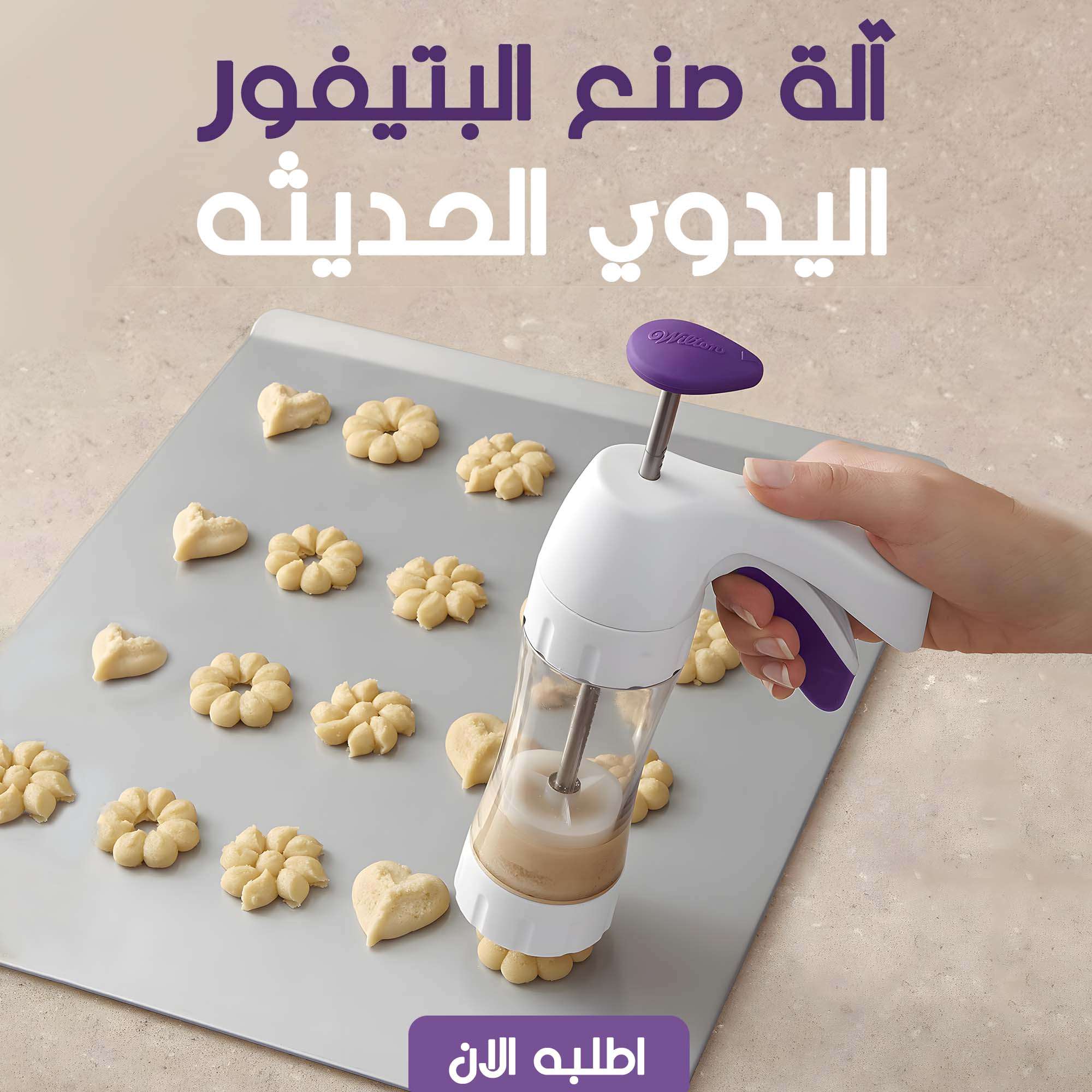 • "دلّل عائلتك بأشهى وأجمل أشكال البتيفور بكل سهولة! 🍪✨ آلة صنع البتيفور اليدوية هتخليك تحضّر أشكال احترافية من غير تعب! اطلبها هسه وجرب متعة الخبز البيتي! 👌🎉" – أسهل وأسرع طريقة للبتيفور البيتي!