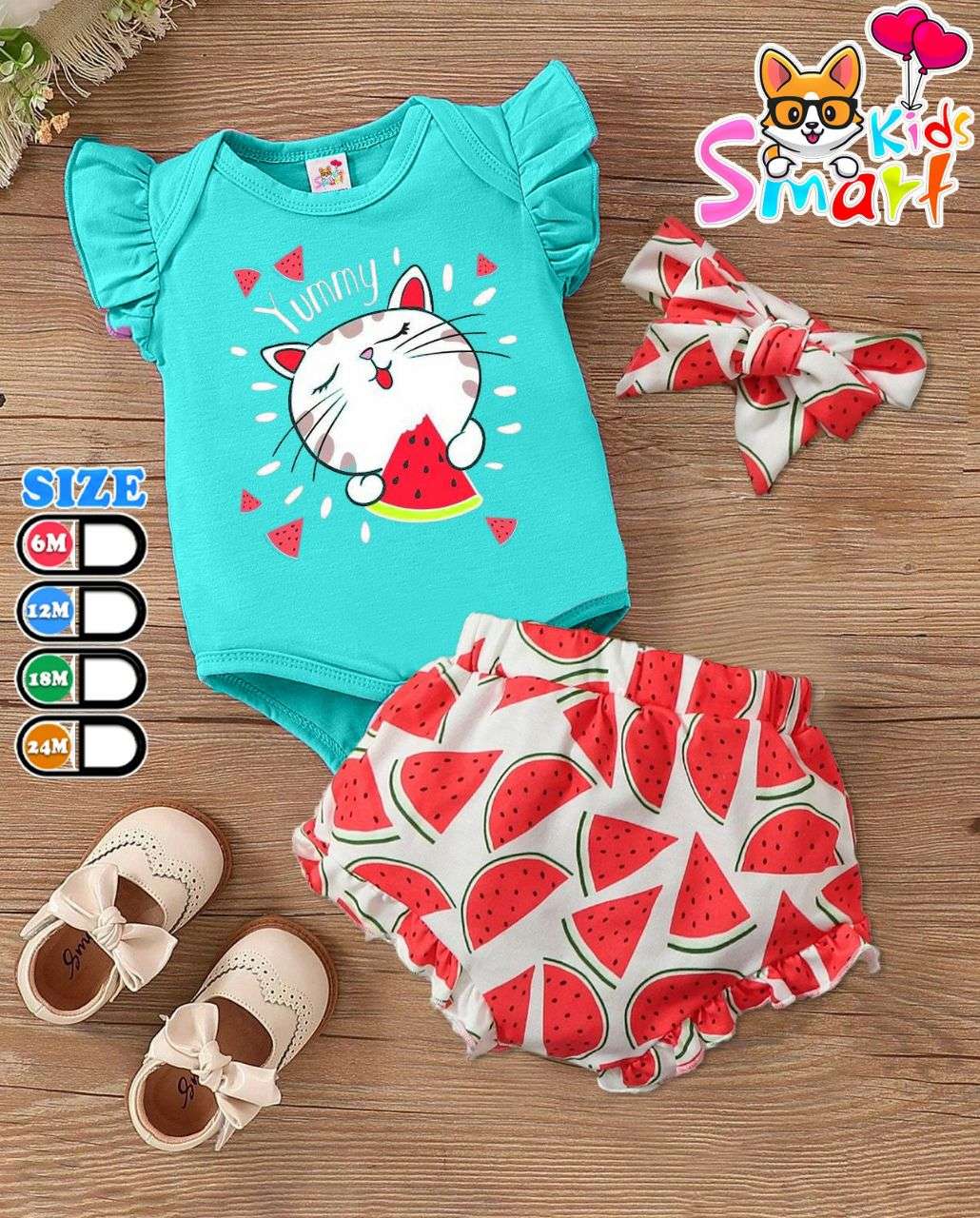 سالوبيت بيبي بناتي صيفي ٣قطع للخروج خامة قطن سنجل ليكرا طباعة