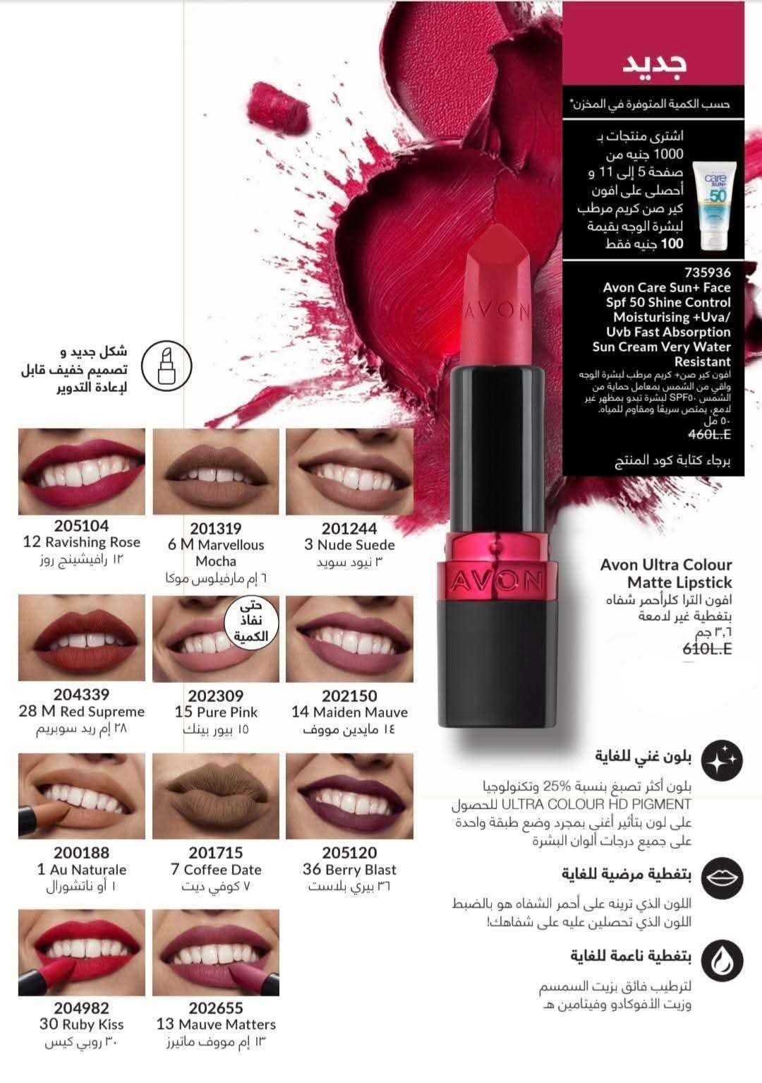 روج الترا كلر بالشكل الجديد #حجز ✨️ 💄Avon Ultra Matte Lipstick 💄 الجديد الحلو اوي 😍 #اوريجنال 💄احمر شفاه الترا مط بمزيج من الزيوت المغذية وتركيبه مرطبه للشفايف ⚘️ ⭐️يحتوي على فيتامي