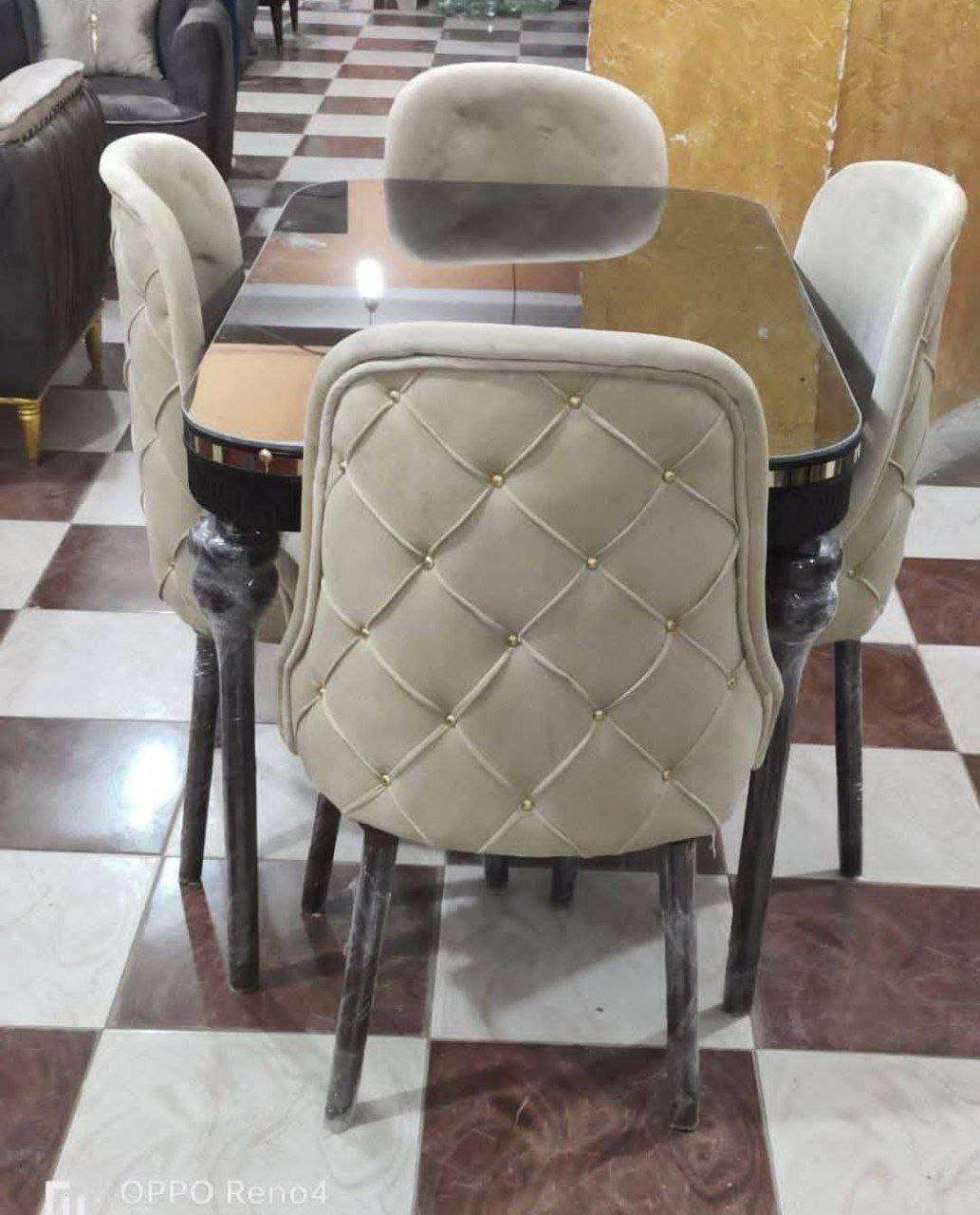 سفره اربع كراسي خشب زان ابيض قماش هامر S