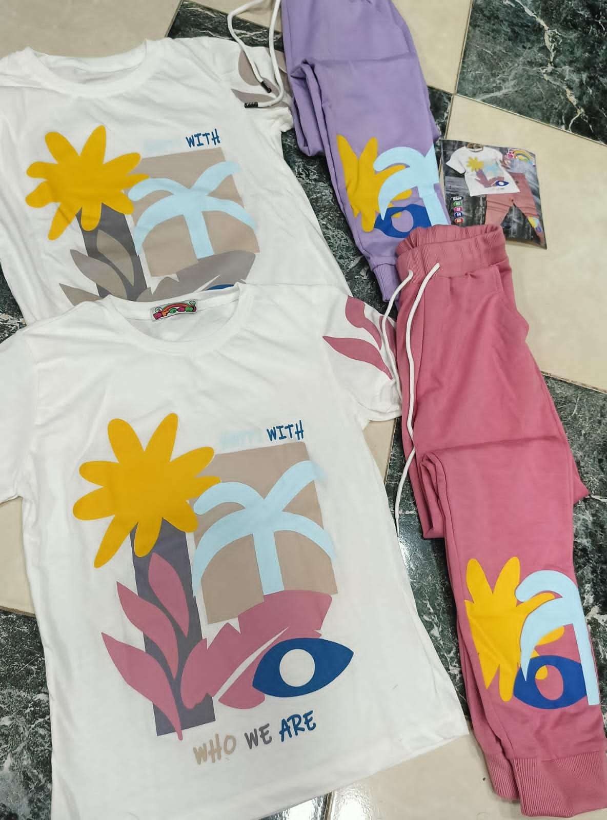 طقم بناتى ،بدى سنجل ليكرا وبنطلون سوفت مطبوع٣٥٠ج.م