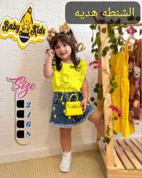 طقم بناتى 3 قطع,شورت جينز رباعية ،تيشرت سنجل ليكرا قطن والشنطة هدية٤٧٠ج.م