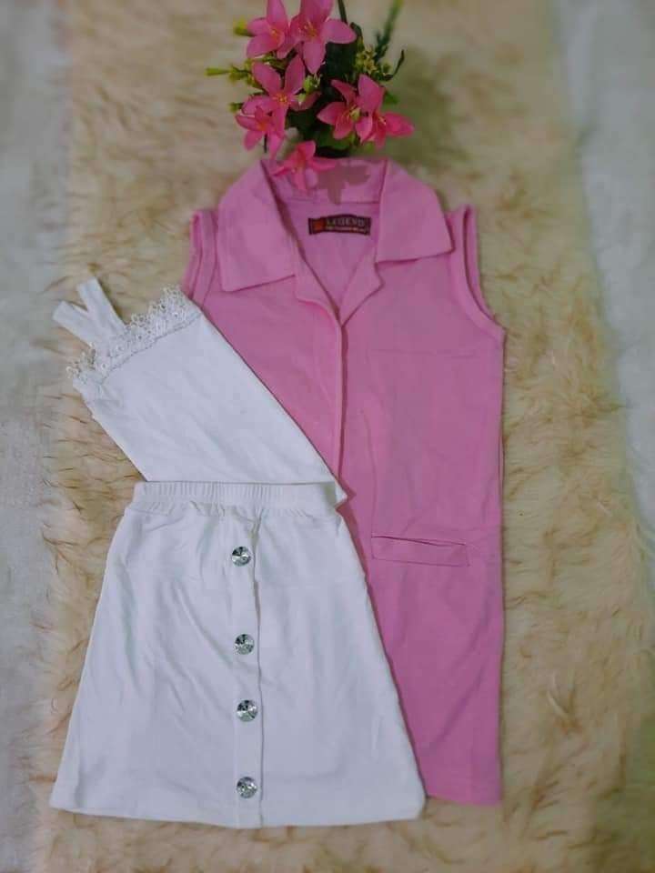 طقم بناتي صيفي ٣قطع للخروج خامة البادى & الجيب سنجل ليكرا __ الكاردى قطن سنجل
