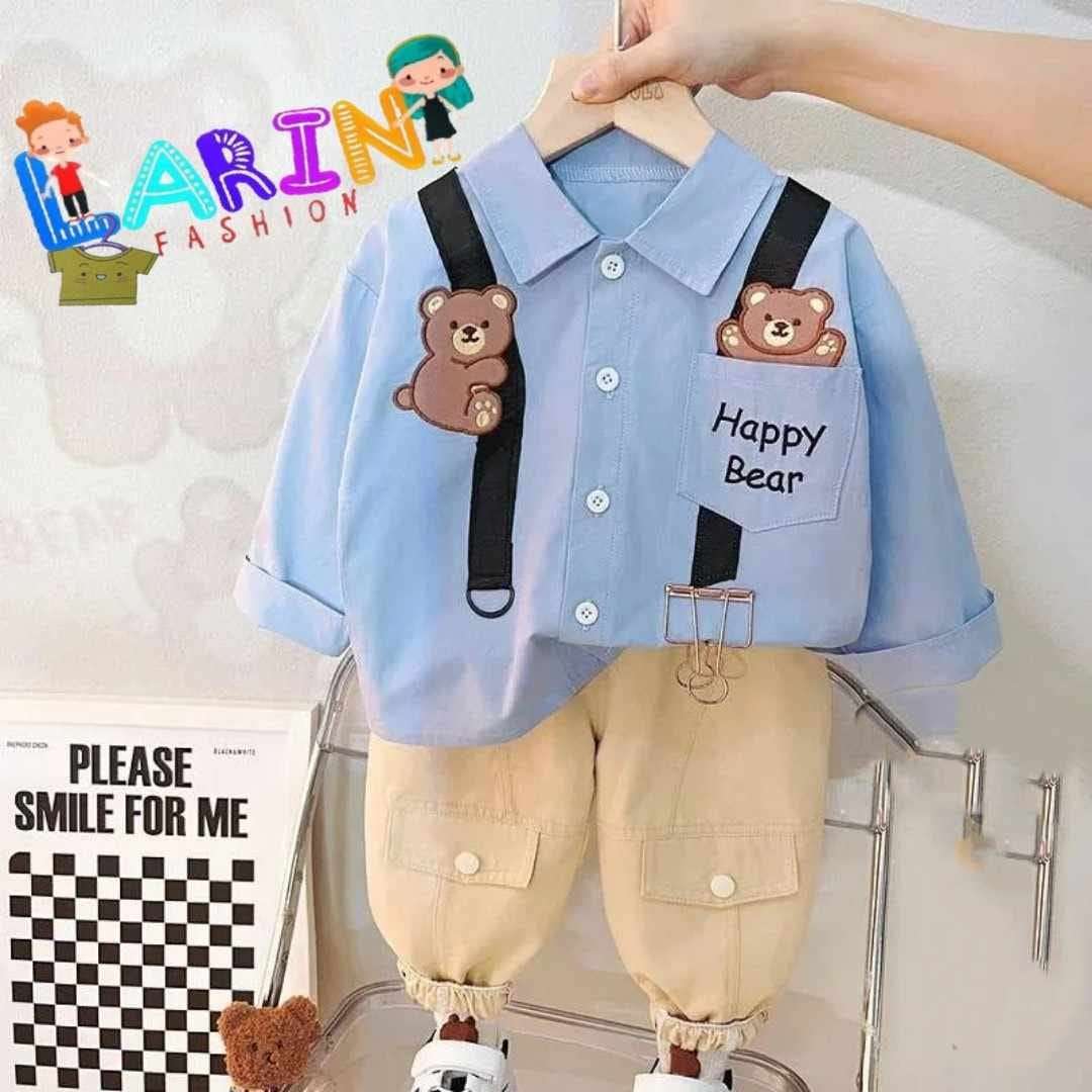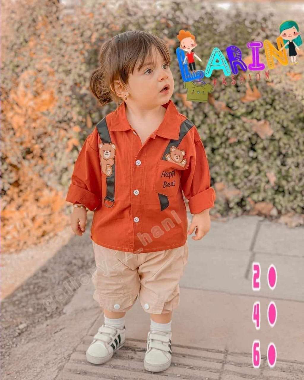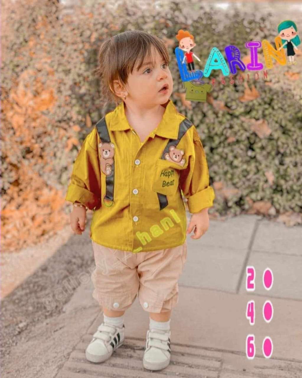 طقم اولادى 3 قطع ،بنطلون جينز رباعية وتيشرت سنجل ليكرا قطن وشميزر بولي٤٥٠ج.م
