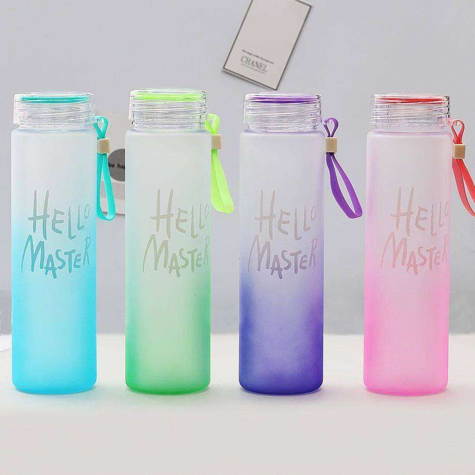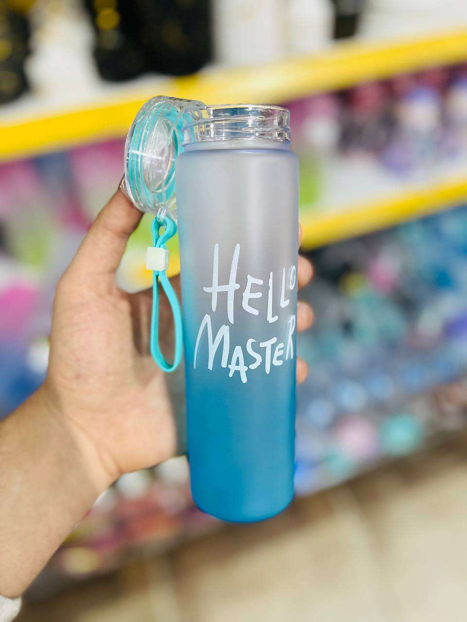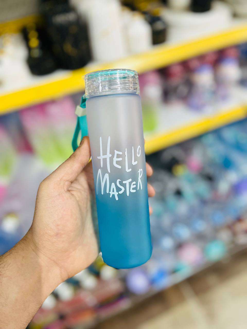 زجاجه hello master الأكلريك كوالتي عالي جدااا وشكلها شيك وانسيابي ومناسب للنوادي والجامعات والمدارس.... وليها يد عليقه سيلكون لسهوله حمل الزجاجه في اليد السعه 500مل الخامه اكلريك صحي رقم 7 ول