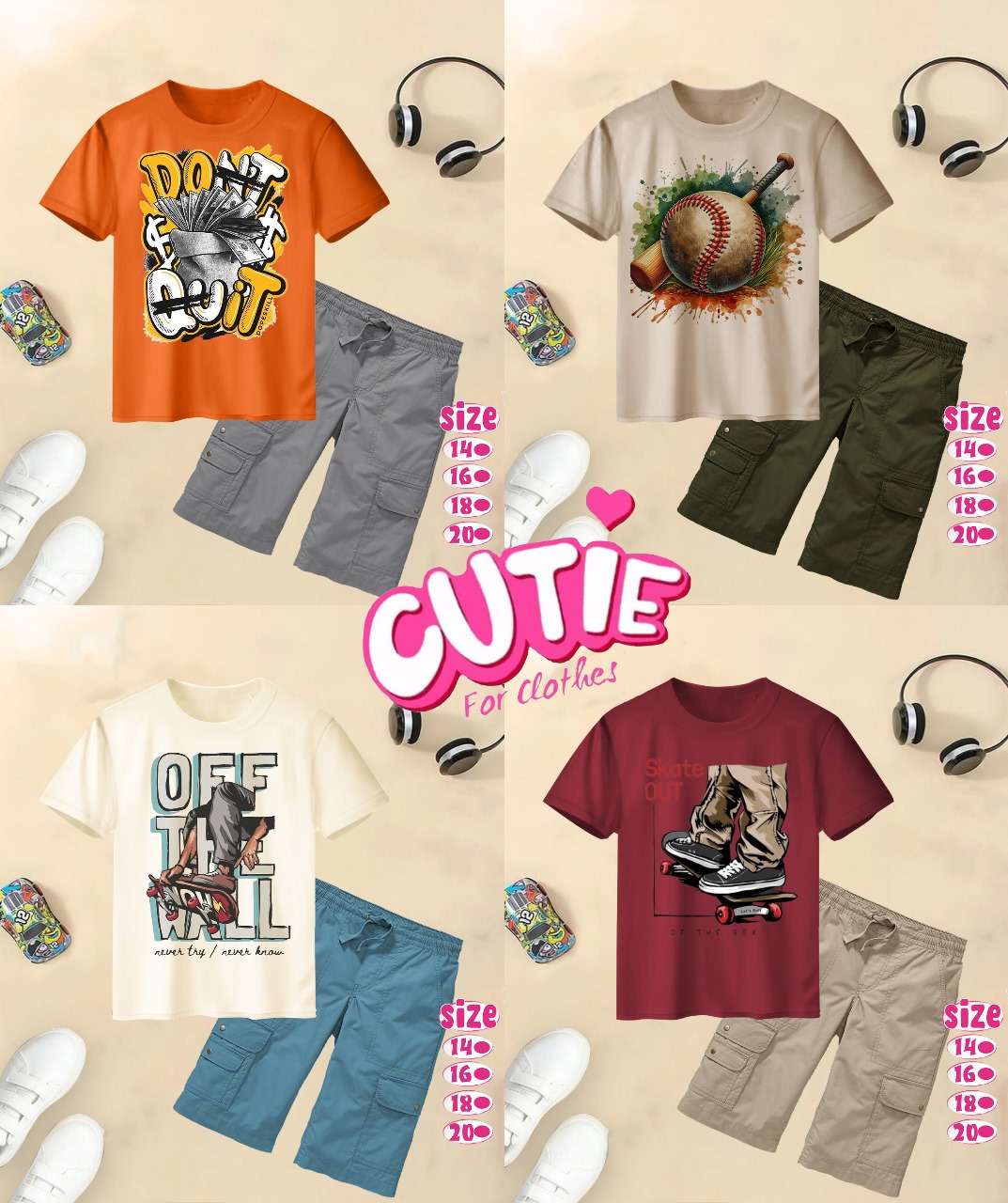 اقوي واشيك طقم أولادي خروج ،،مي الخامه 💪💪 تيشيرت سنجل قطن ١٠٠💯85 شورت جبردين خروووج وكلكو جربتو خاماتنا 😍😍 المقاسات ١٤ ١٦ ١٨ ٢٠ 🔥🔥🔥 *ملحوظه الشورت مغطي الركبه* حجزززز