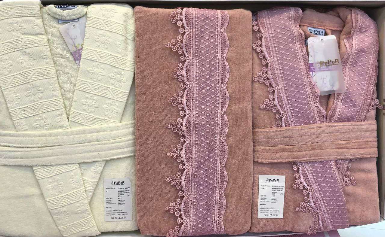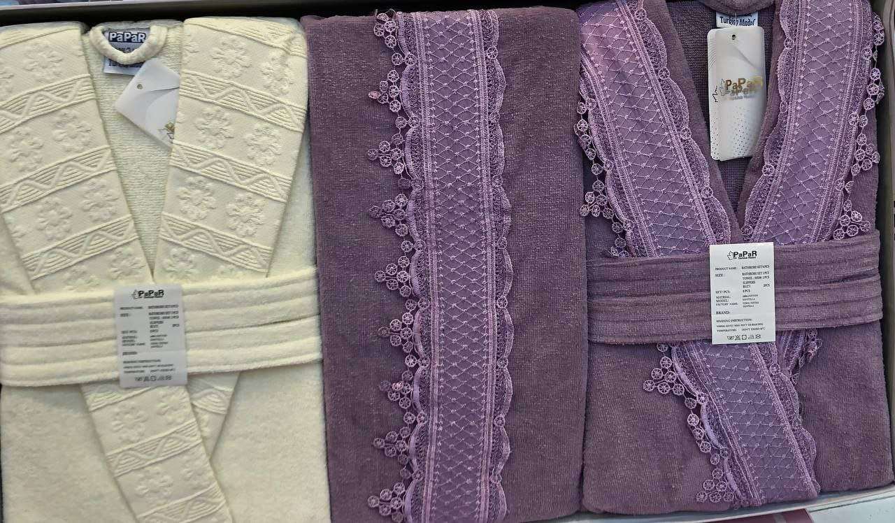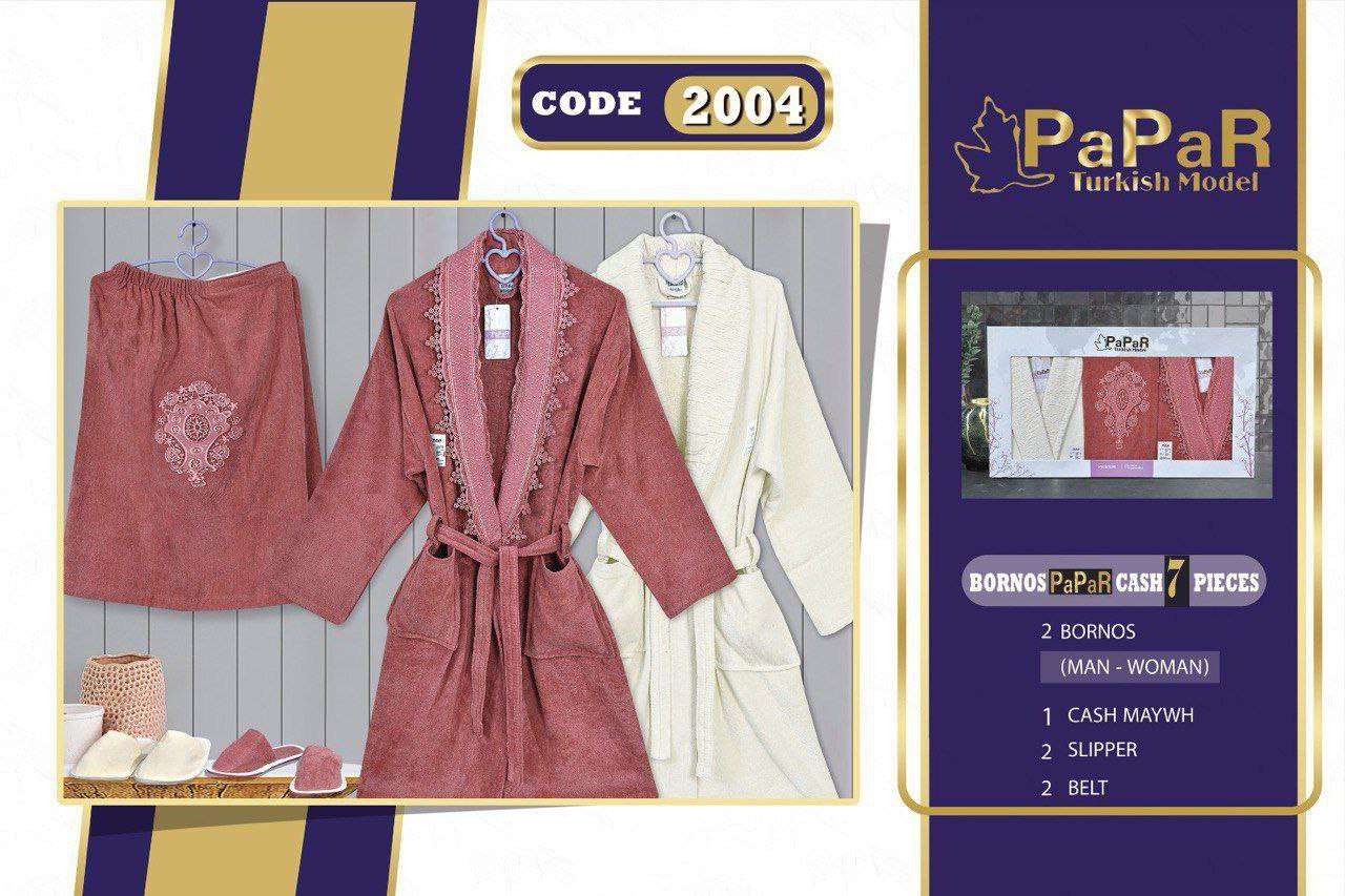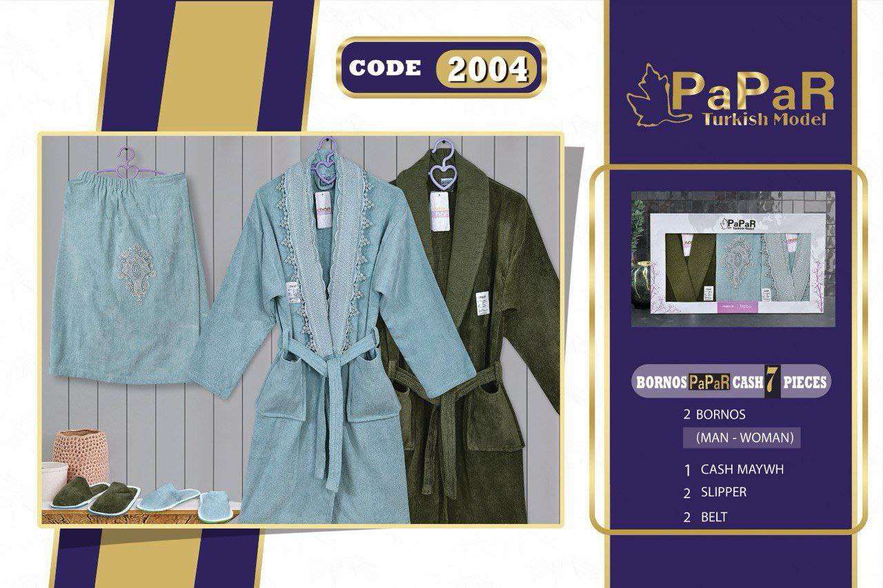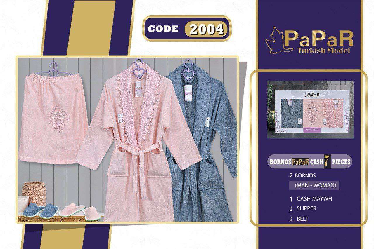 🌼 طقم برنس زوجي من papar بابار كود 2004 🌺 قطن صافي 💯✖️💯 7 قطع ٢ برنس ١ كاش ٢ سليبر ٢ حزام السعر 1590 ج